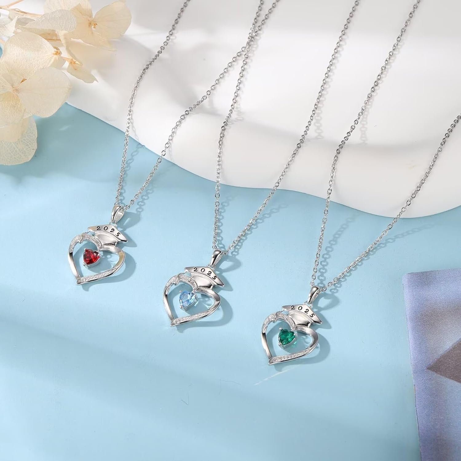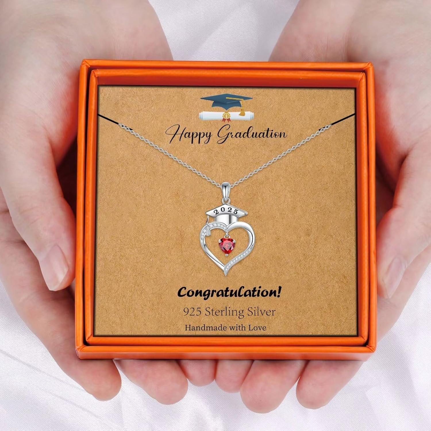 Iefil 2025 Graduation Gifts – 925 Sterling Silver Heart Birthstone Necklace, 2025 Graduation Gifts for Women Her