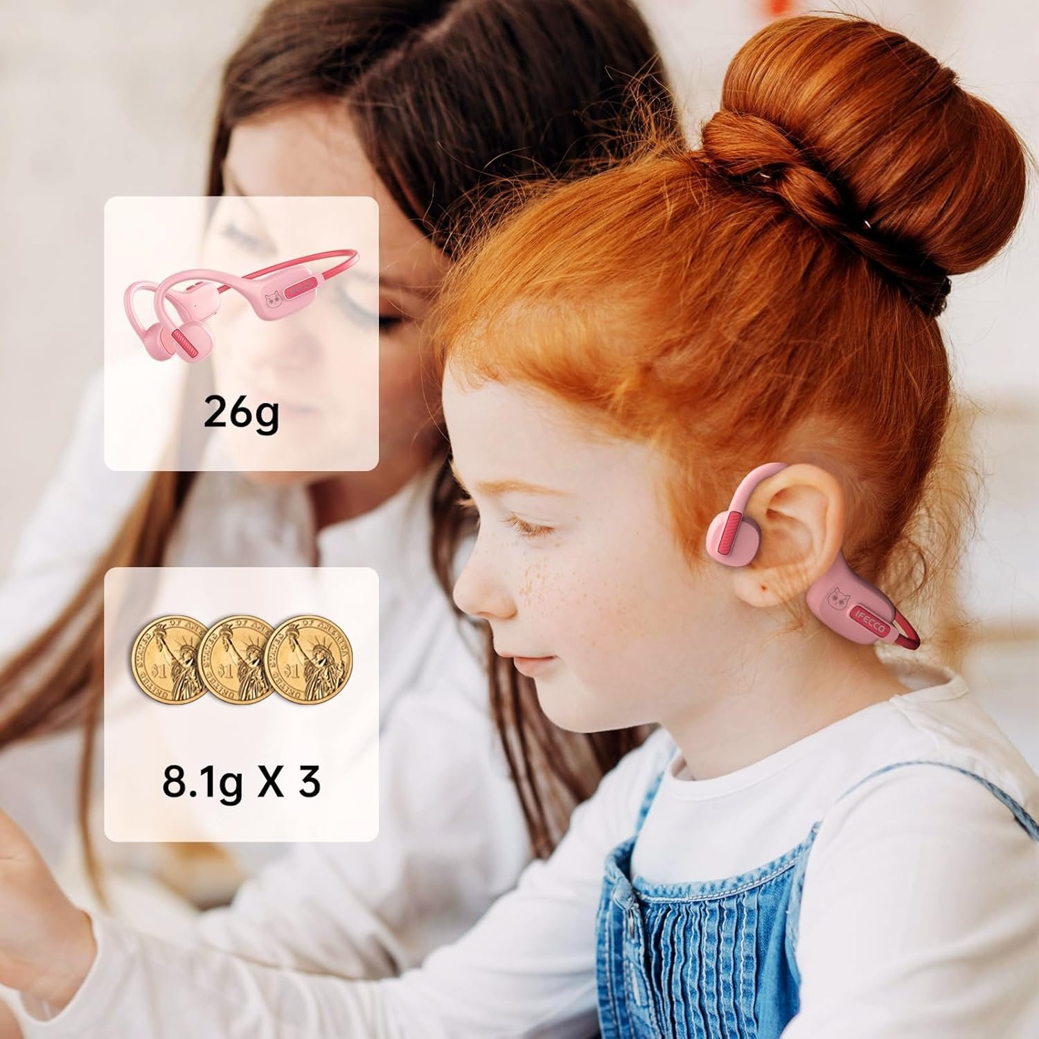 IFECCO Kids Open Ear Headphones – Kids Girls Bluetooth 5.3 Conduction Headphones with Mic,Ultra-Light,IPX5 Waterproof and Safer for Children Wireless Headphones,Perfect for School Travel Gifts (Pink)