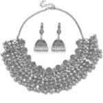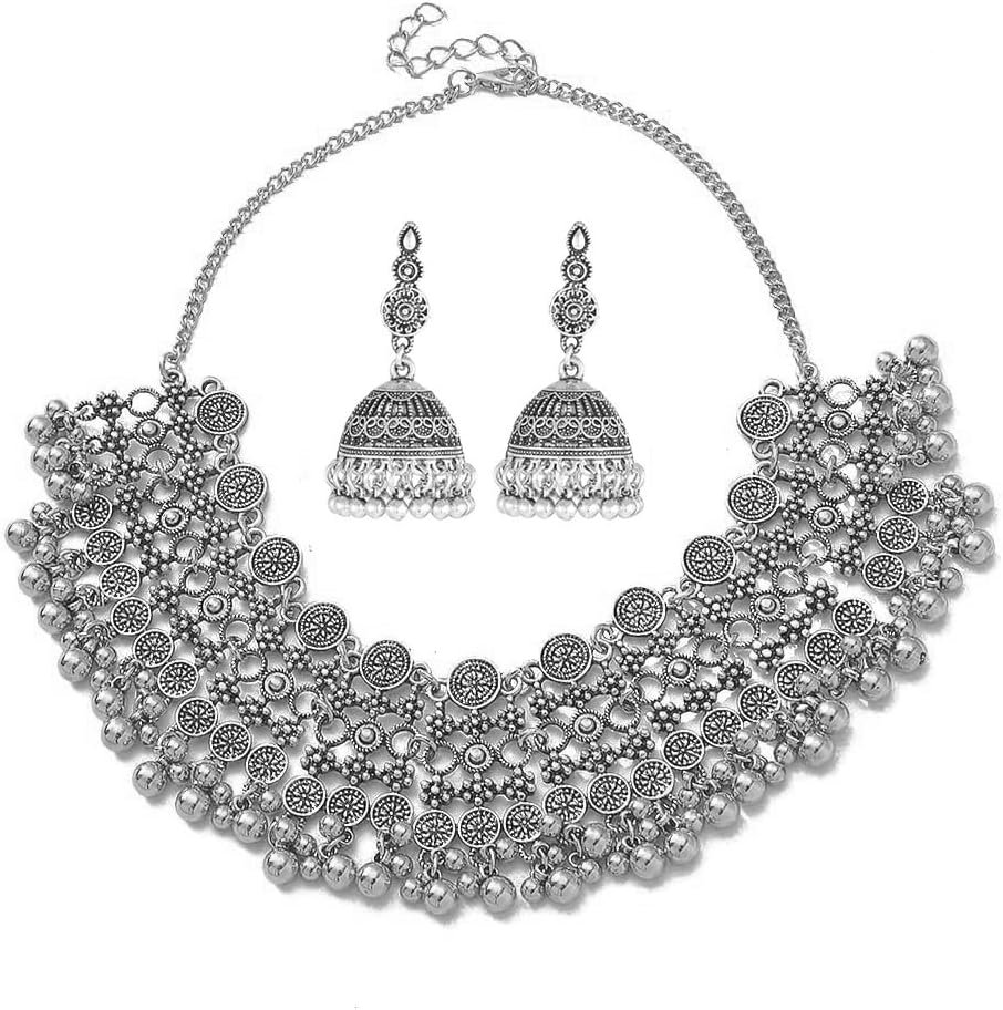 Indian Bollywood Traditional Jhumka Jewellery Set for Women Large Big Tassel Beaded Kundan Ethnic Wedding Wear Party Festival Choker Necklace Earrings Maang Tikka Traditional Fashion Antique Jewelry