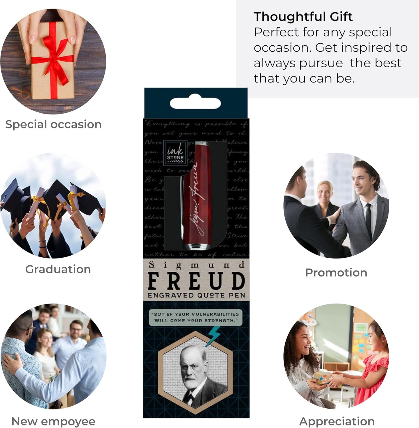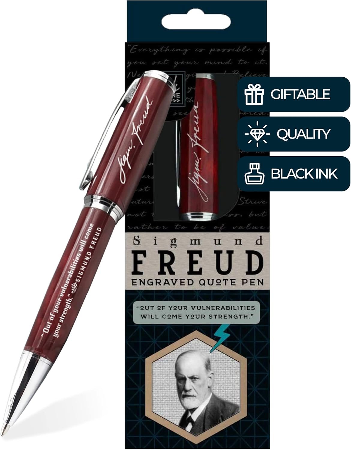 Inkstone Sigmund Freud Engraved Quote Pen – Out of Your Vulnerabilities Will Come Your Strength. – Psychology Gifts for Psychologists Guidance Counselors Psychology Students Therapists