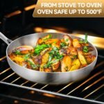 Universal Stovetop Compatibility: This versatile stainless steel pan works seamlessly on gas, electric, induction, and halogen stovetops. Its flat, warp-resistant base ensures optimal contact for efficient heat transfer, whether you’re stir-frying or slow-cooking