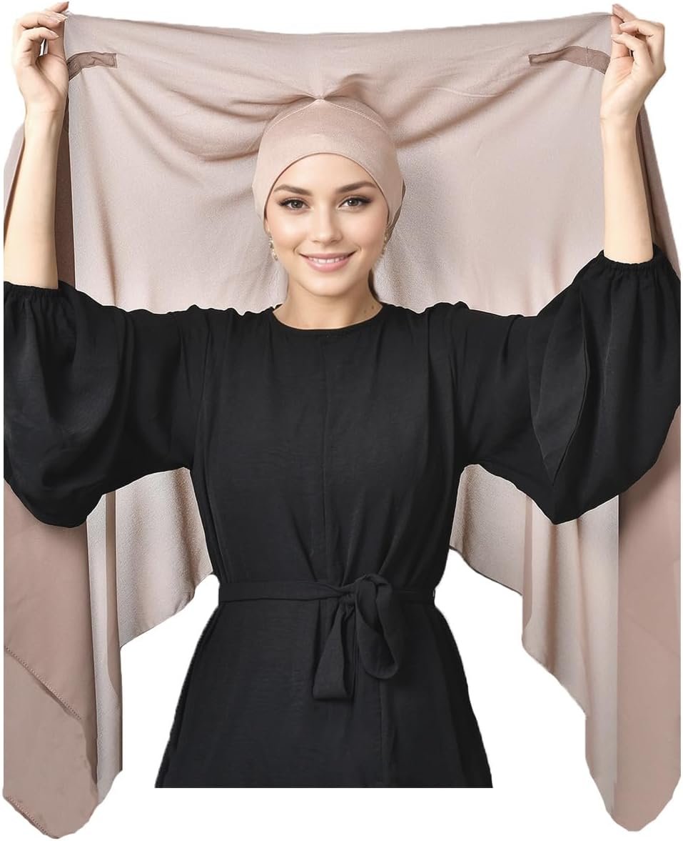 Instant Chiffon Hijab Set 3-in-1 Hijabs Scarf with Built-in Magnets and Undercap Head Wraps with Model Cap
