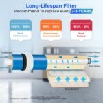Top-notch Quality – Tested by independent third-party to meet NSF/ANSI Standards, our Reverse Osmosis Membrane is made of food-grade high capacity material that provides high packing density to remove contaminants. With the 0.0001 micron size, it only allows water molecules to squeeze through and virtually nothing else. TDS rejection rate up to 97% (under NSF58 testing condition).
