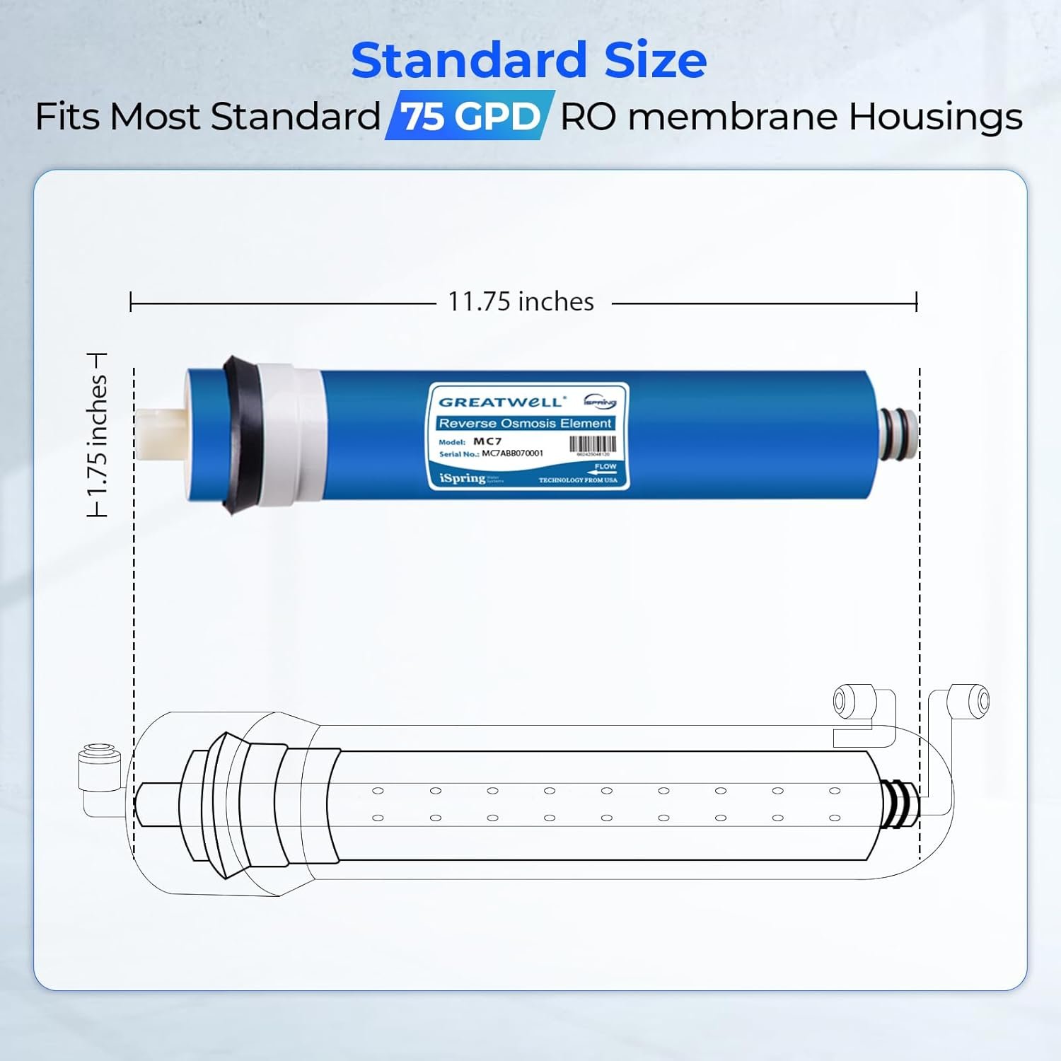 Standard Size – With 11.75″ X 1.75″ industry-standard size, our membrane fits most standard under sink RO membrane housings. It has the capability of producing 75 gallons of water per day, ensuring that families of nearly any size will have plenty of clean drinking water available on demand.