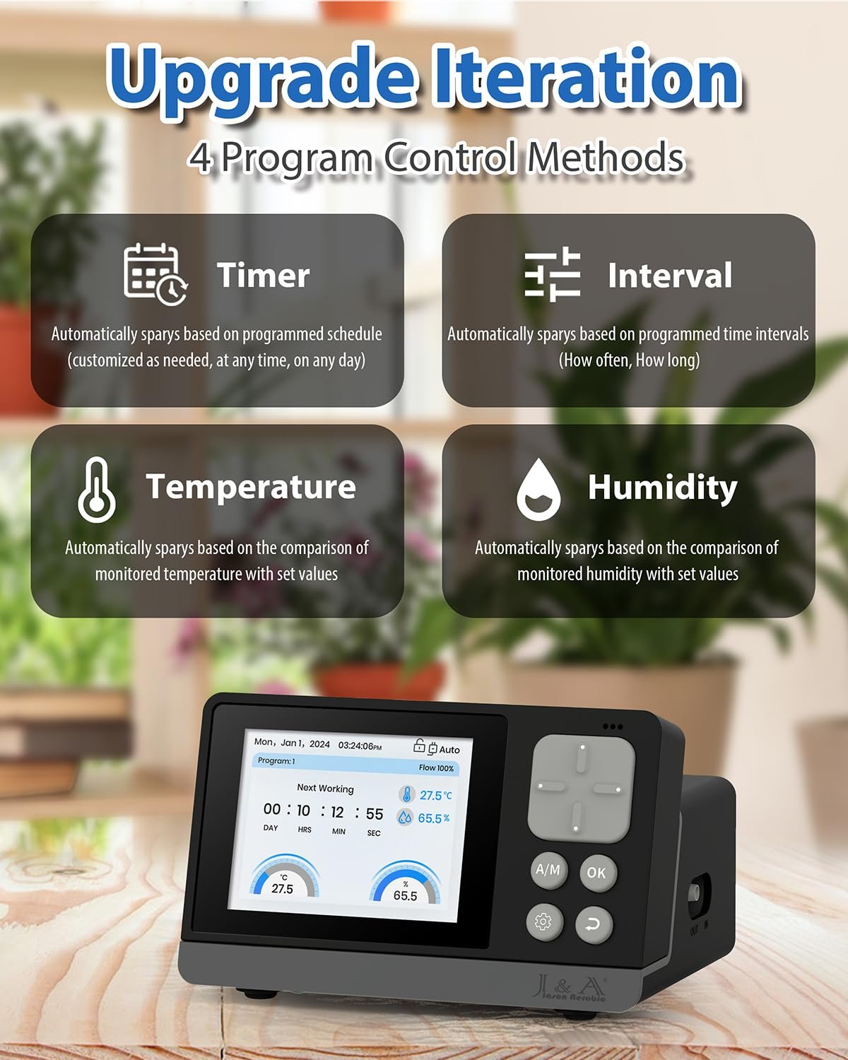 4 Auto Program Modes: Tailor the watering schedule with manual/auto work modes and 4 automatic program control method providing convenience and flexibility to meet the specific needs of your plants, ensuring they receive the perfect amount of water at the right time