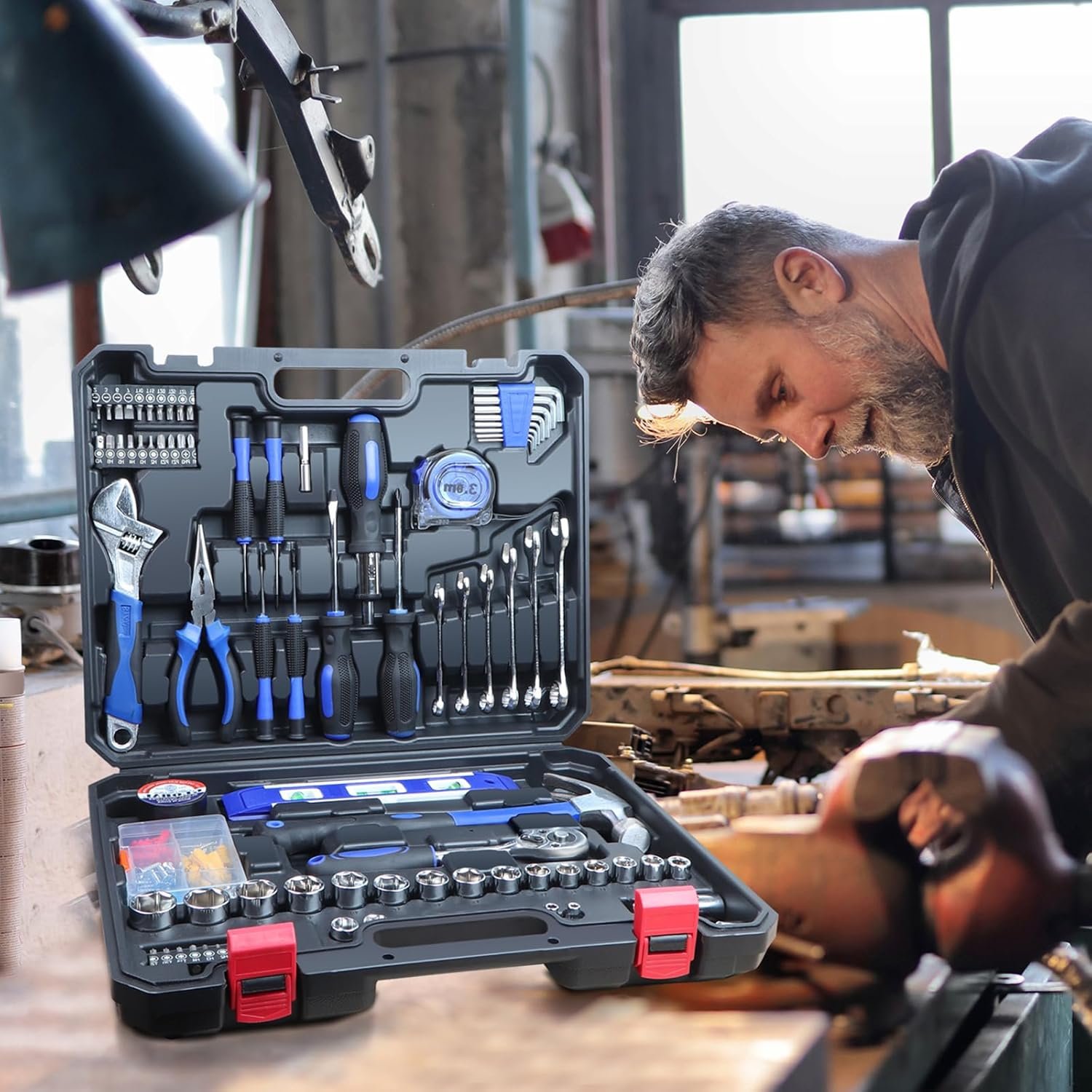 【Portable Tool kit】The accessories of this tools kit comes in a molded case which is well-organized with a separate place for each one. The sturdy molded case can withstand pressure and keep the DIY tools safe, clean, and secure in it. Handy and lightweight, you can easily carry it anywhere. It fits anywhere in your home, apartment, garage, or even the car.