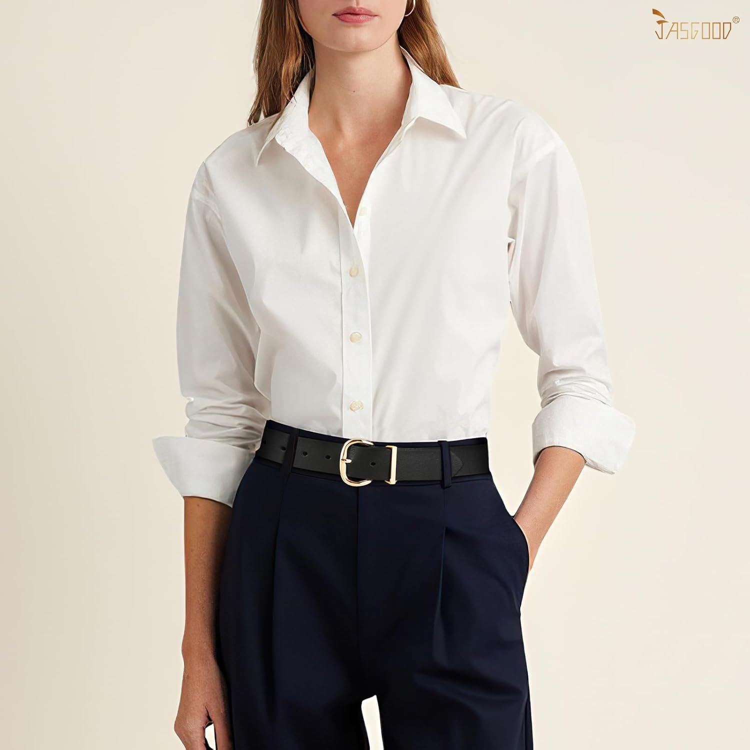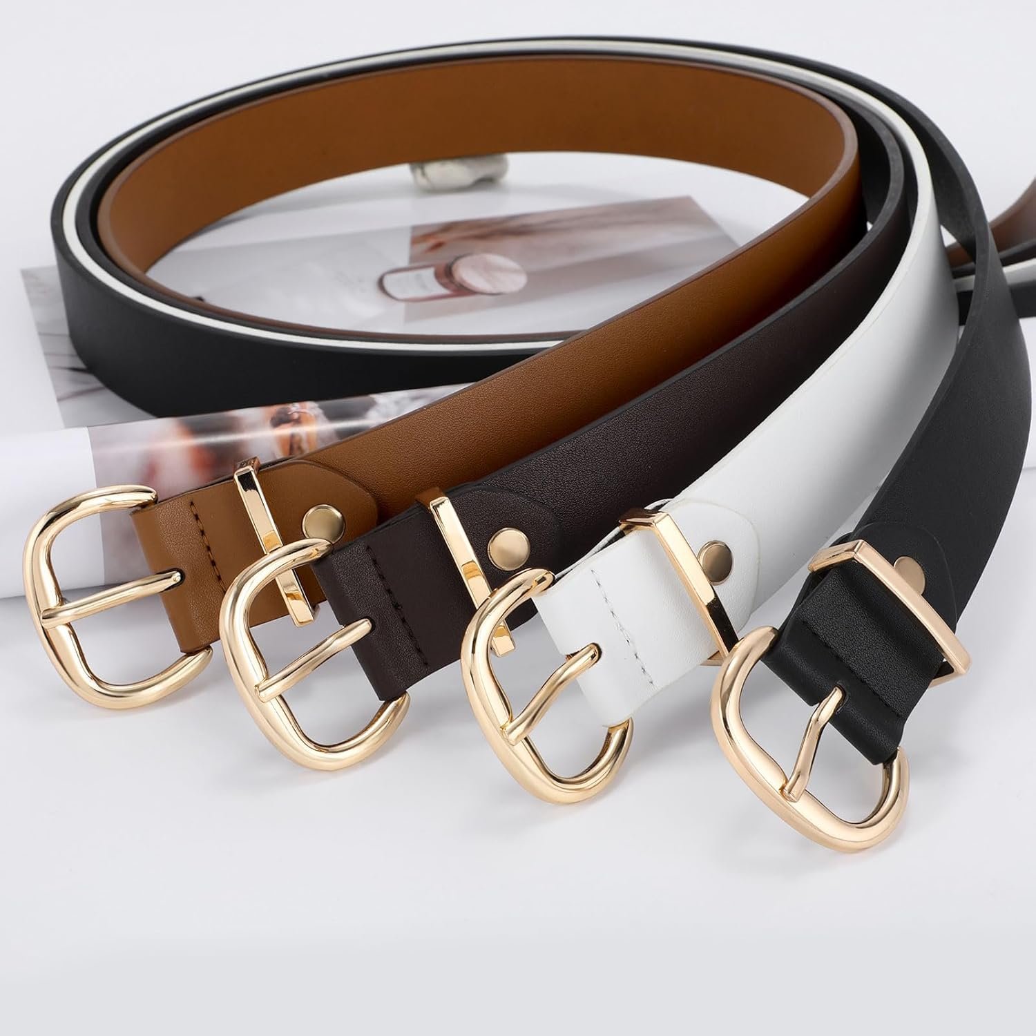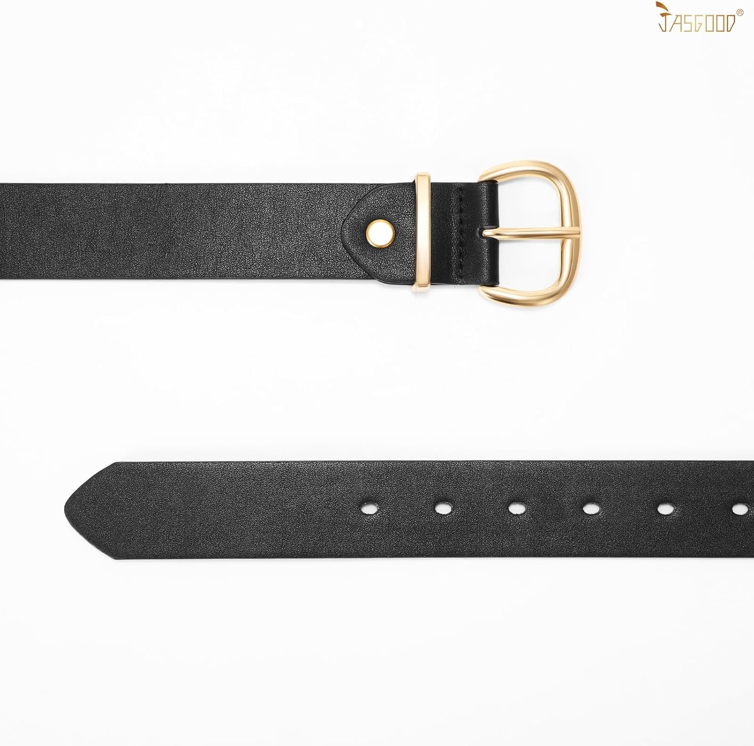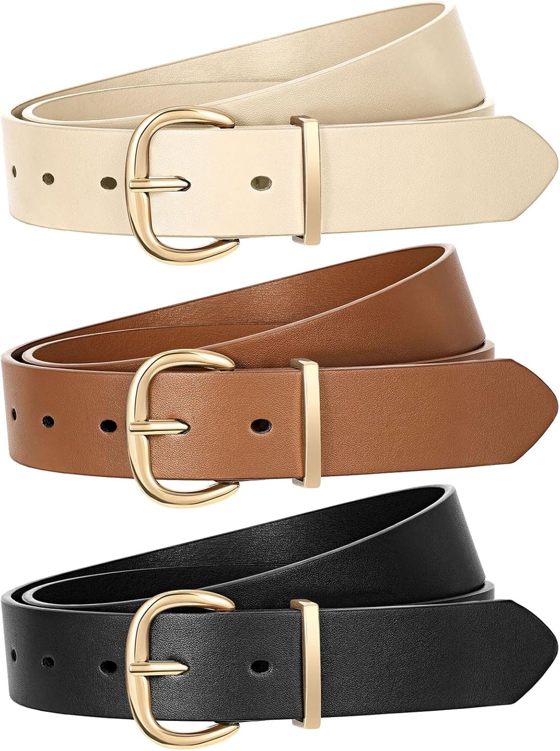 JASGOOD 3 Pack Women Leather Belt for Jeans Pants Gold Buckle Casual Waist Dresses Belt for Ladies
