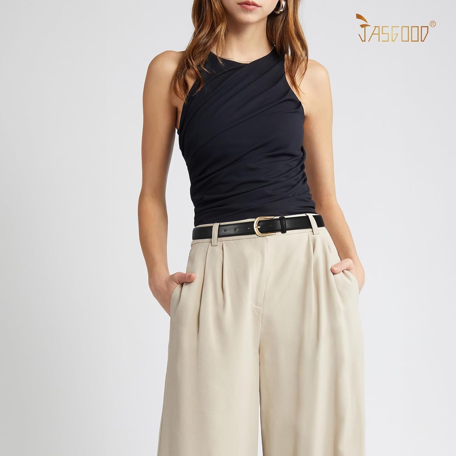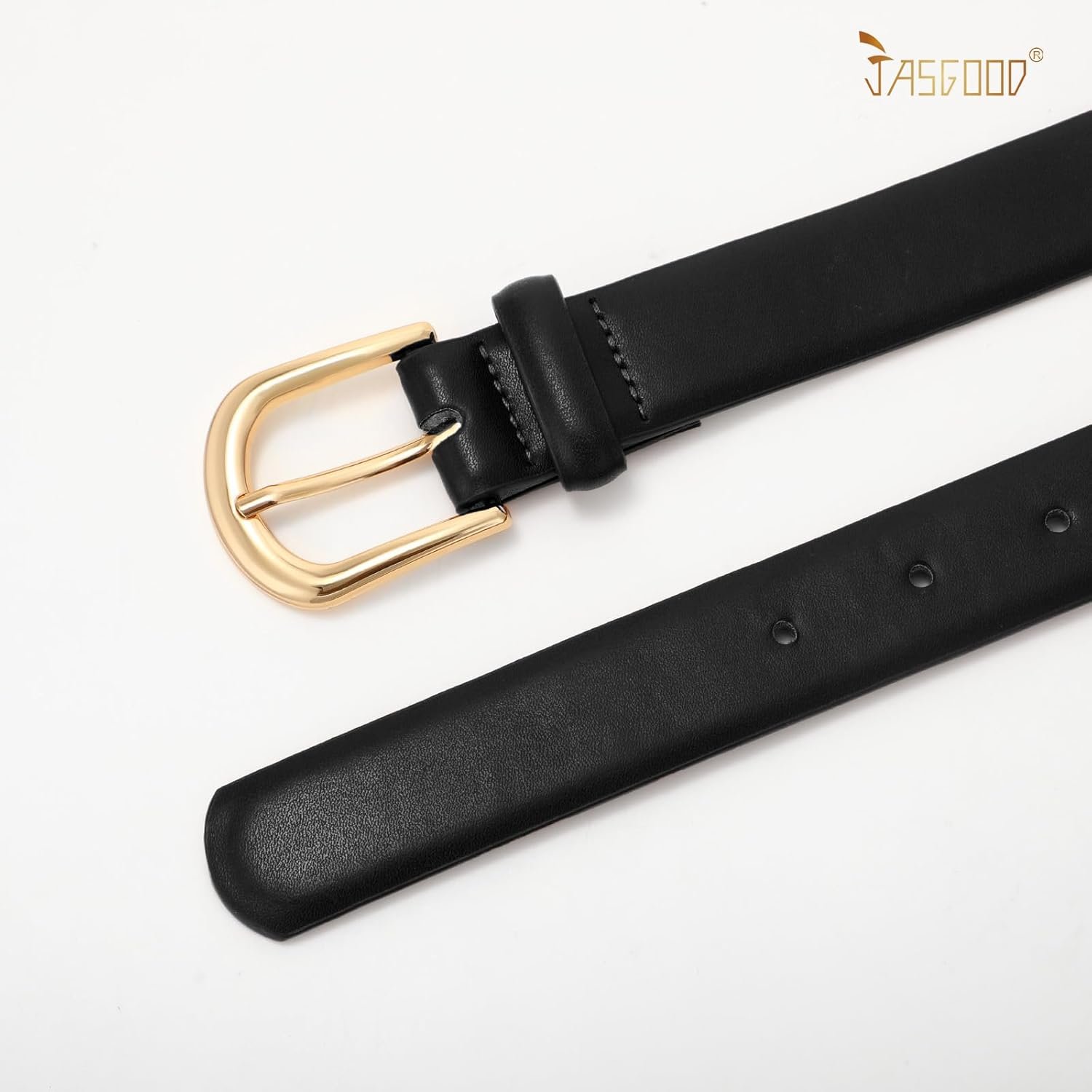 JASGOOD Women Casual Leather Belt for Jeans Pants Dress, Fashion Ladies Waist Belt with Gold/Silver Buckle