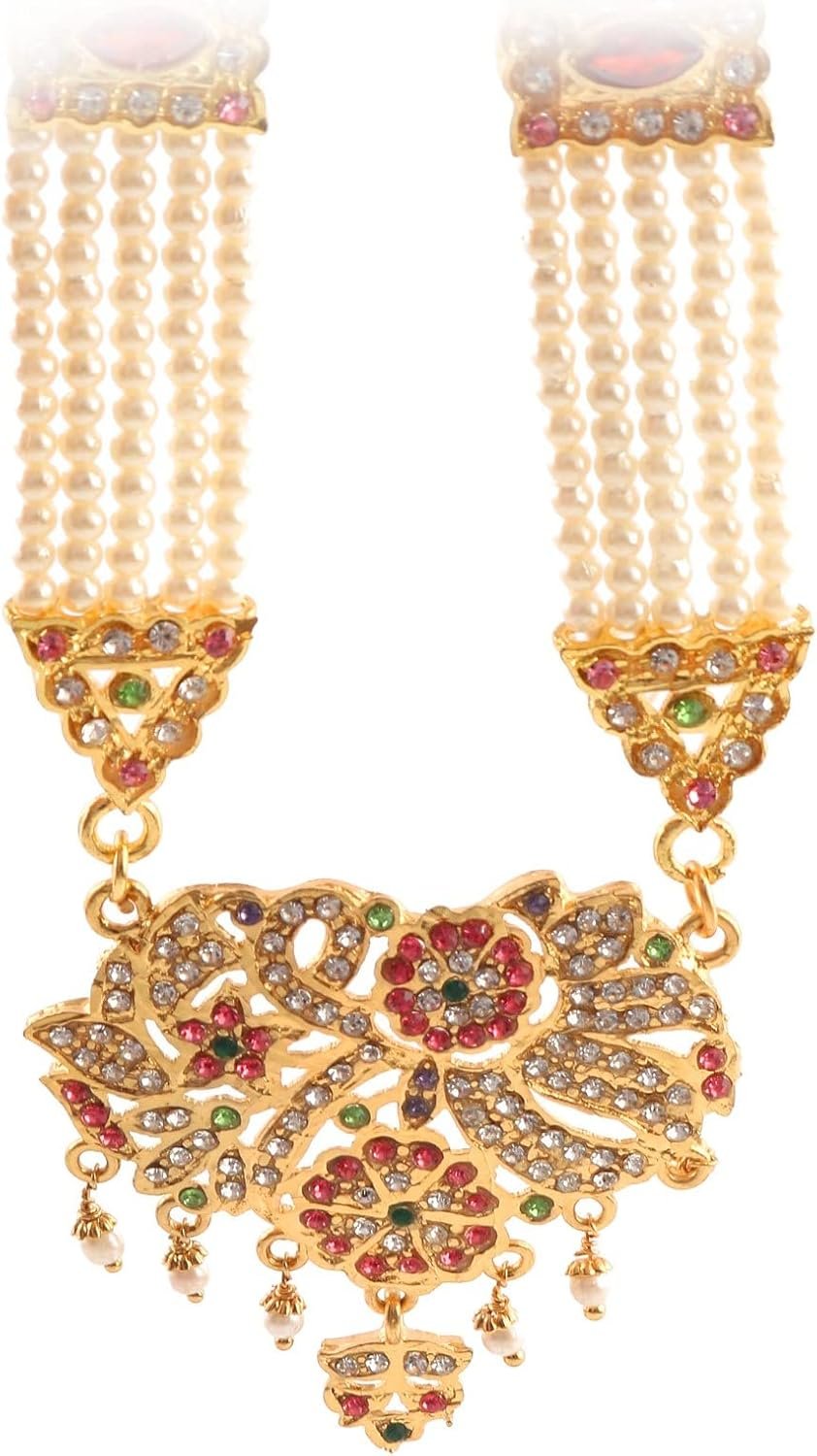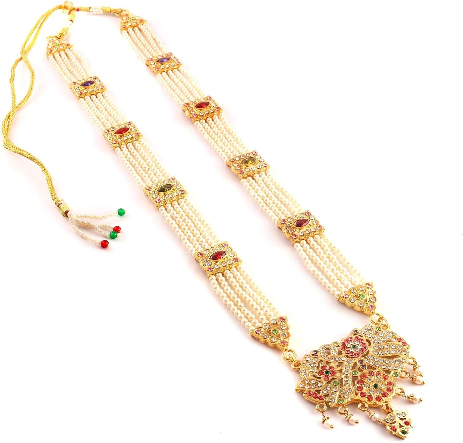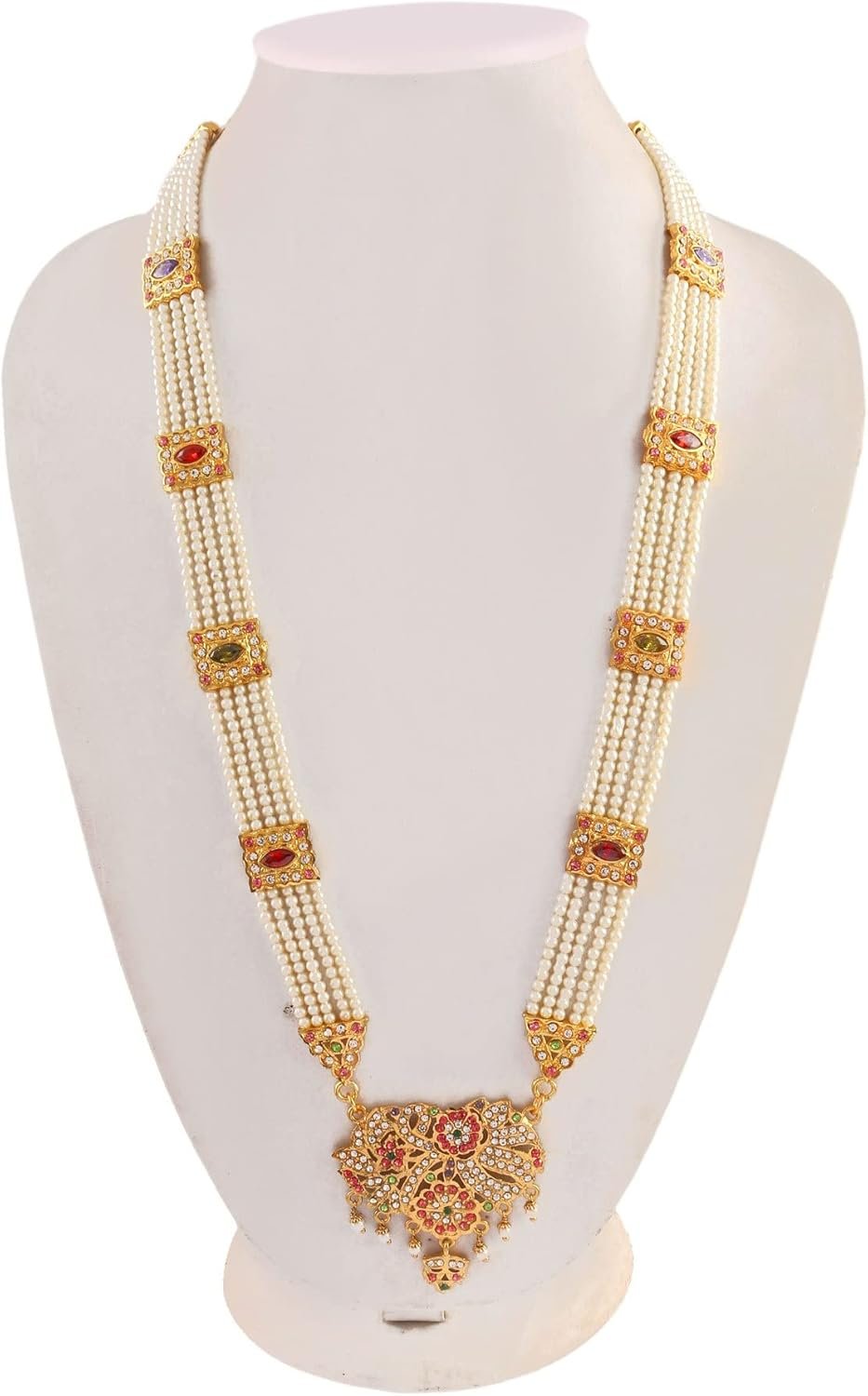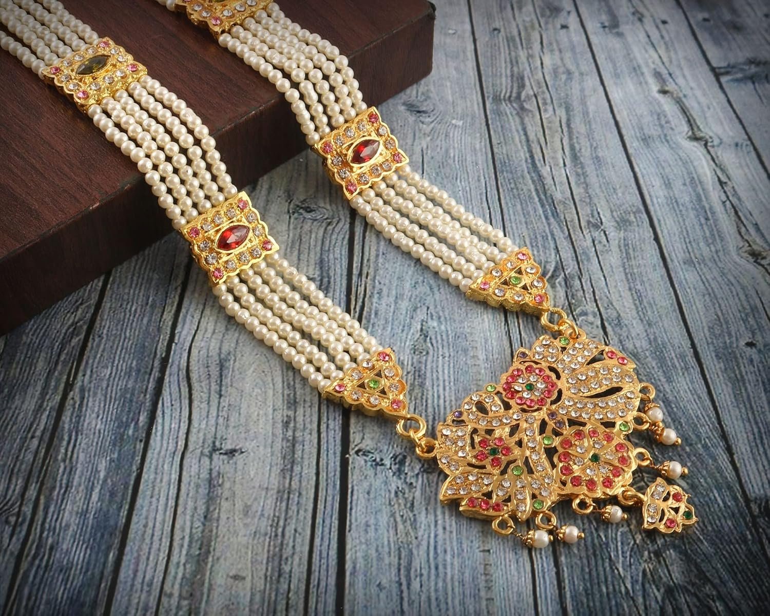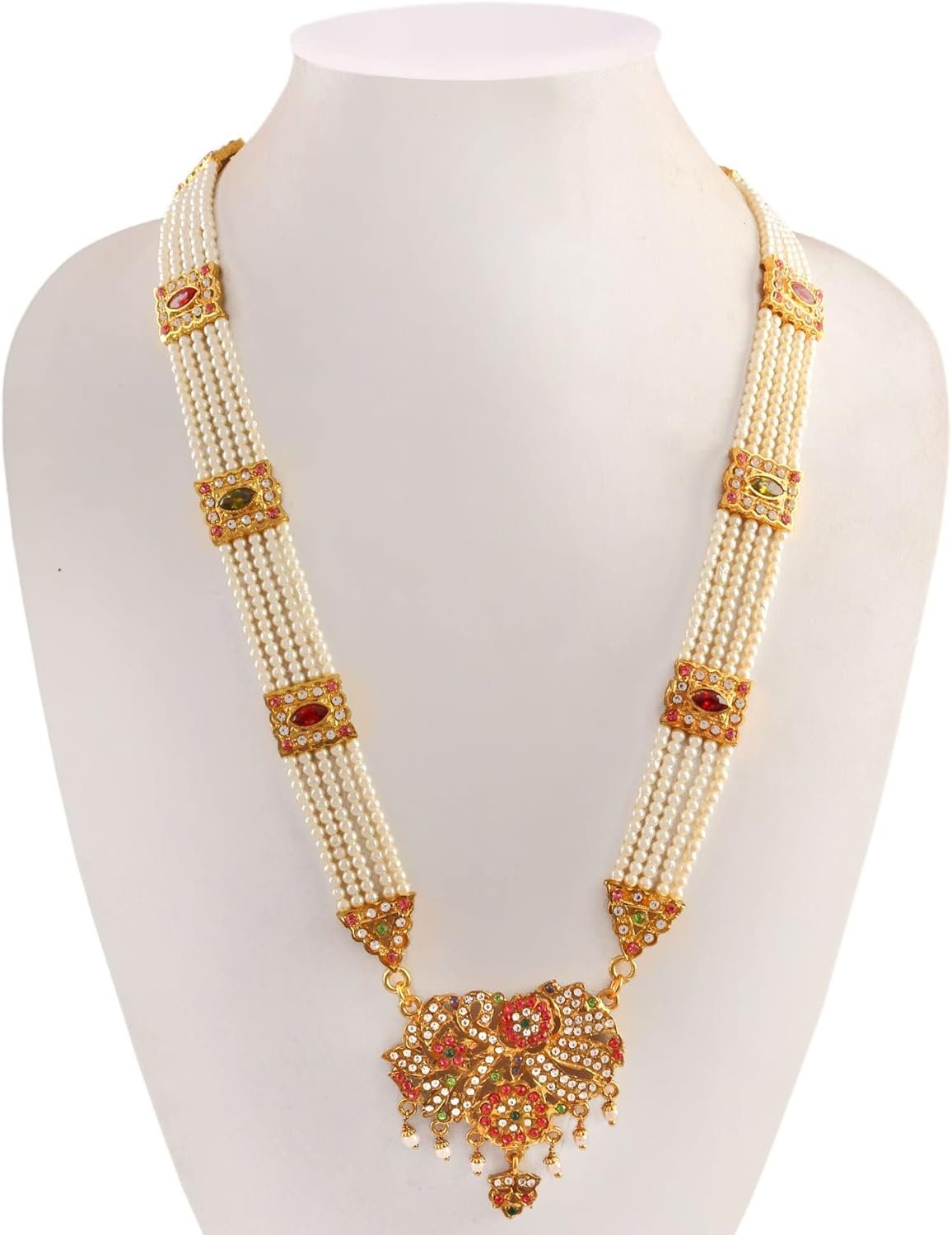 Jewar Indian Pearl Necklace Long Set Gold Plated Traditional Ad Cz Designer Handmade Bridal Fashion Jewelry For Women