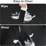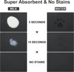 Super absorbent & no stains: As perfect pet supplies, the super absorbent ability can absorb the water dripped on the dog water mat quickly and leaving no traces, which can avoid wetting the pet’s paws. The special technical dog feeding mat material can hide messy stains completely.Black,28″x17″