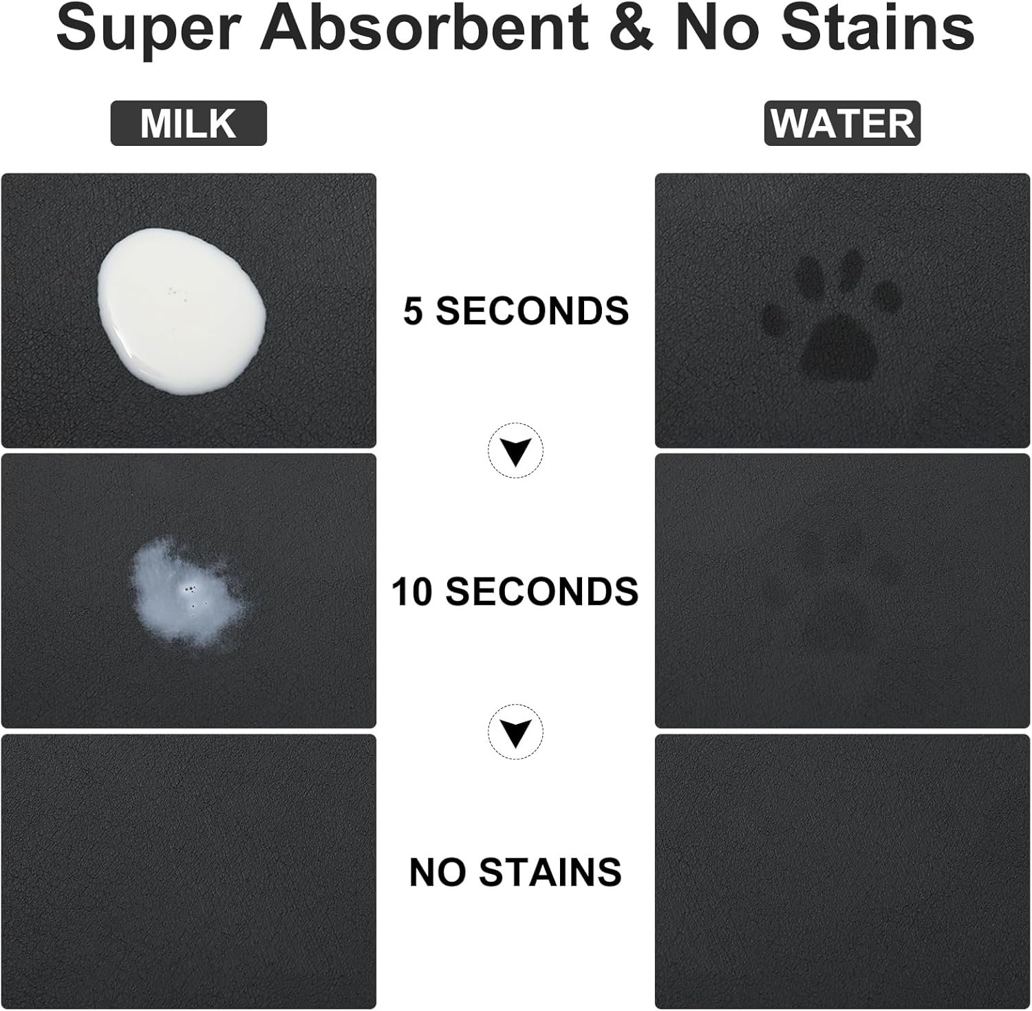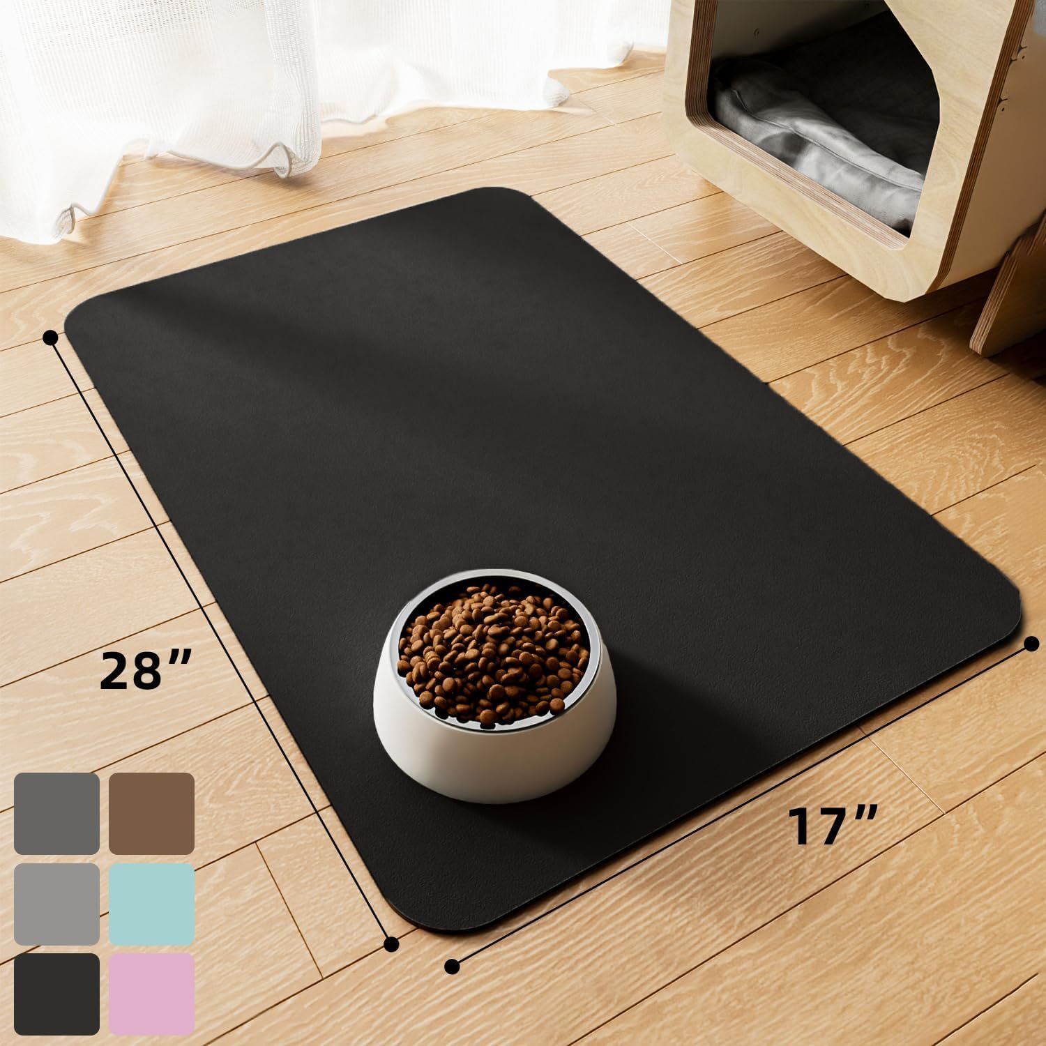 JUCFHY Pet Feeding Mat-Absorbent Cat & Dog Food Mat-No Stains Easy Clean Dog Mat for Food and Water-Quick Dry Dog Bowl Mat Dog Accessories-Dog Water Matt for Sloppy Drinkers,Black,28″x17″
