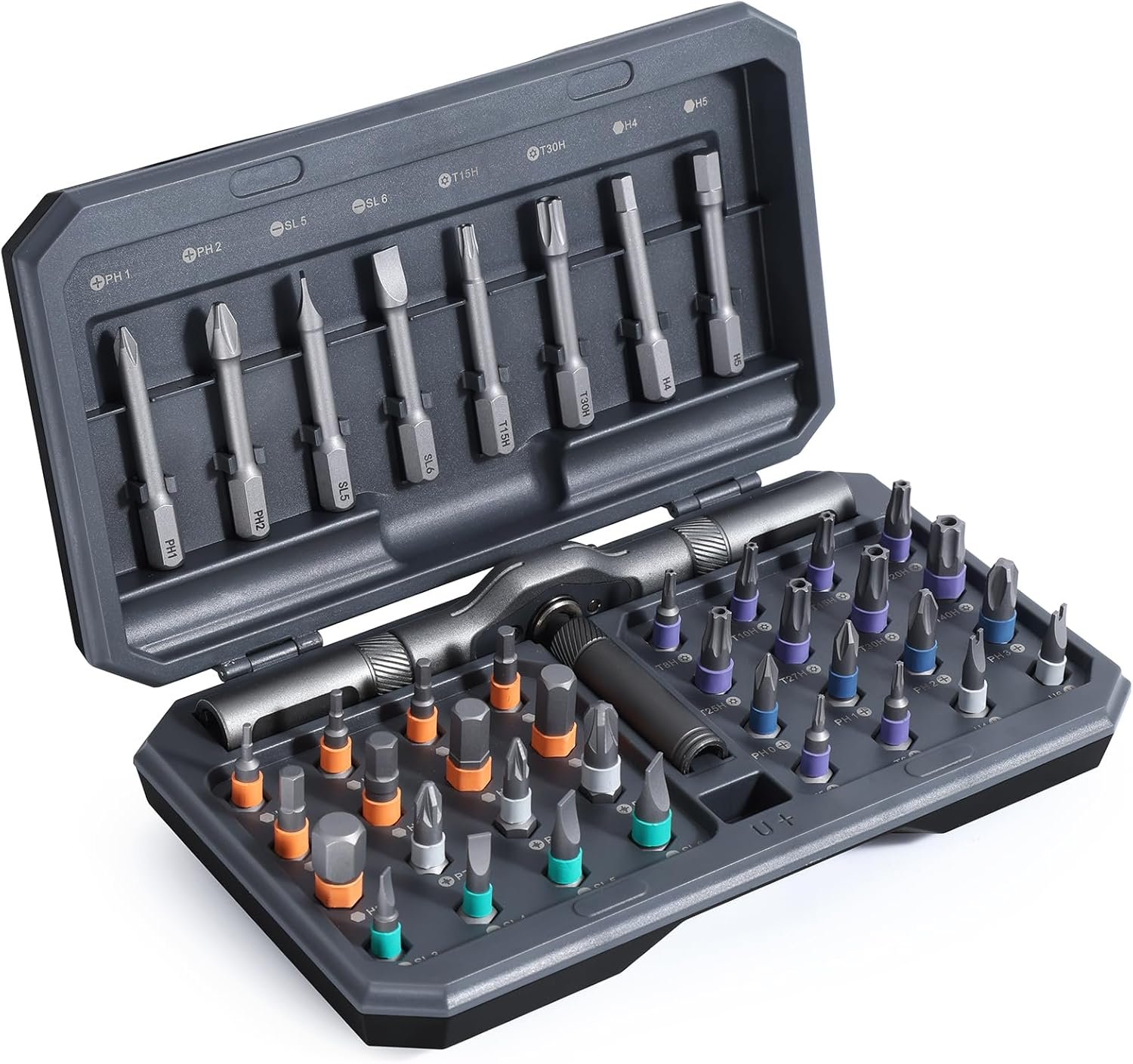 Versatile Multi-Bit Screwdriver Set – This 42-in-1 screwdriver set includes 40 premium S2 chrome-molybdenum steel bits (1/4” diameter) for superior durability. Featuring 32 short 25mm bits (PH, SL, Torx, Hex, PZ, U-shape) and 8 long 45mm bits, it’s perfect for home maintenance, DIY projects, bicycle repairs, and professional tasks.