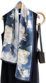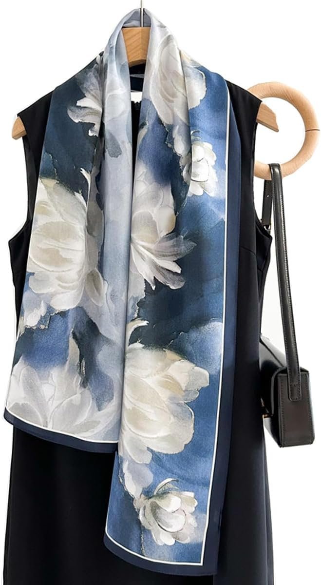 Material: 12-momme high quality 100% pure mulberry silk, non polyester, skin-friendly, no pollution, no peculiar smell. It has a nice luster, delicate, lightweight, breathable, soft and comfortable.Size: 55” X 13.7” (140cm X 35cm). Long lightweight scarf,100% pure mulberry silk scarves.Design :ingenious designed and elaborately printed patterns available, colorful and gorgeous, delicate and beautiful- Fit for women in all ages. Versatile: The fashion scarf could be wrapped around your neck, waist, wrist, ankle,hair and head, as well as your handbag by different knotting and wearing ways.Best Gift for Anyone: The high quality silk scarves wrap will making a lovely gift idea for your lover, family, friend or coworkers in an anniversary, wedding ceremony, birthday party or leaving present,Christmas and any festival.