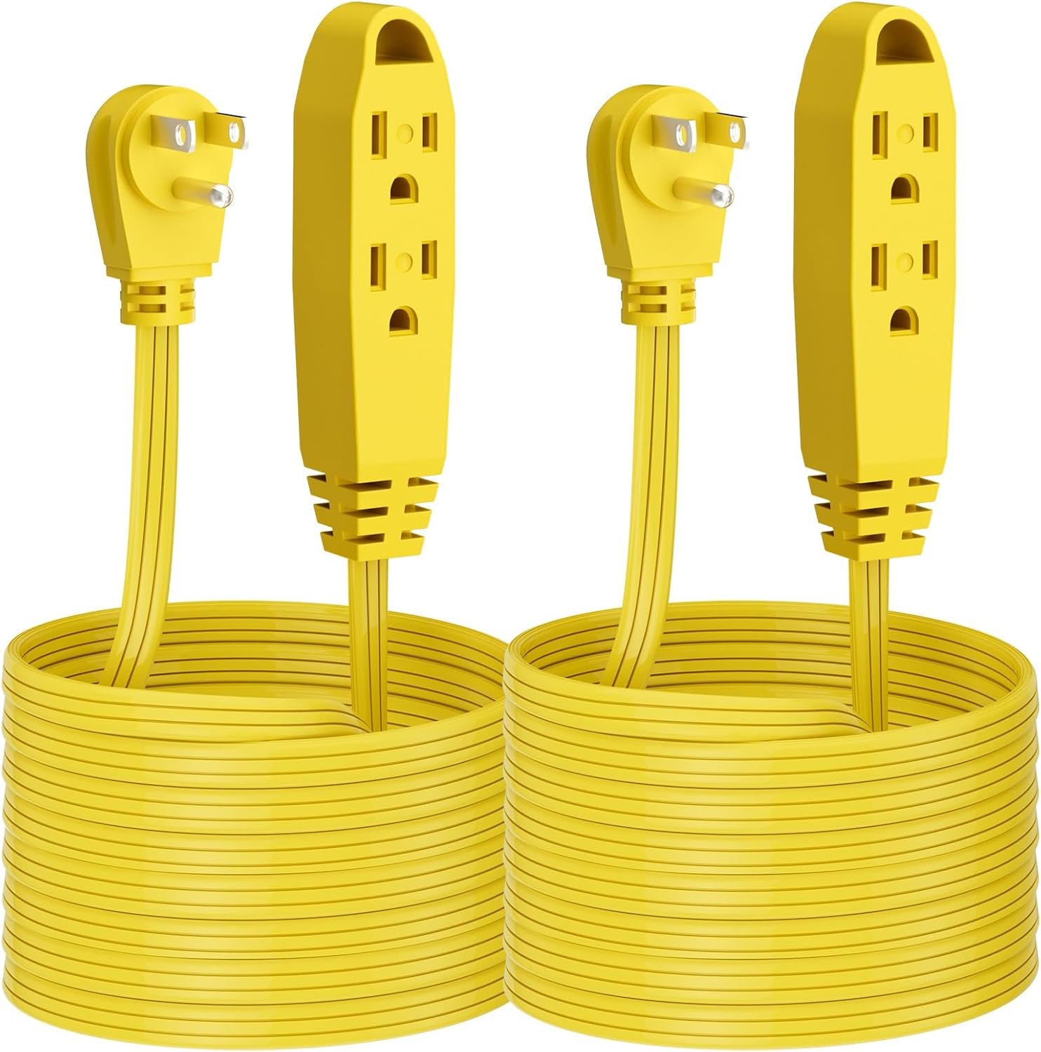 K KASONIC – 12-Feet 3 Outlet Extension Cord, 2 Pack, Triple Wire Grounded Multi Outlet, UL Listed 16/3 SPT-3, 13 Amp, 125V, 1625 Watts, Yellow