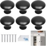 Kare & Kind 6X Round Cabinet Knobs – Matte Black – Pulls for Kitchen Drawers, Cupboards, Dressers – Classic Looking Handles – Hardware for DIY, Home Improvement