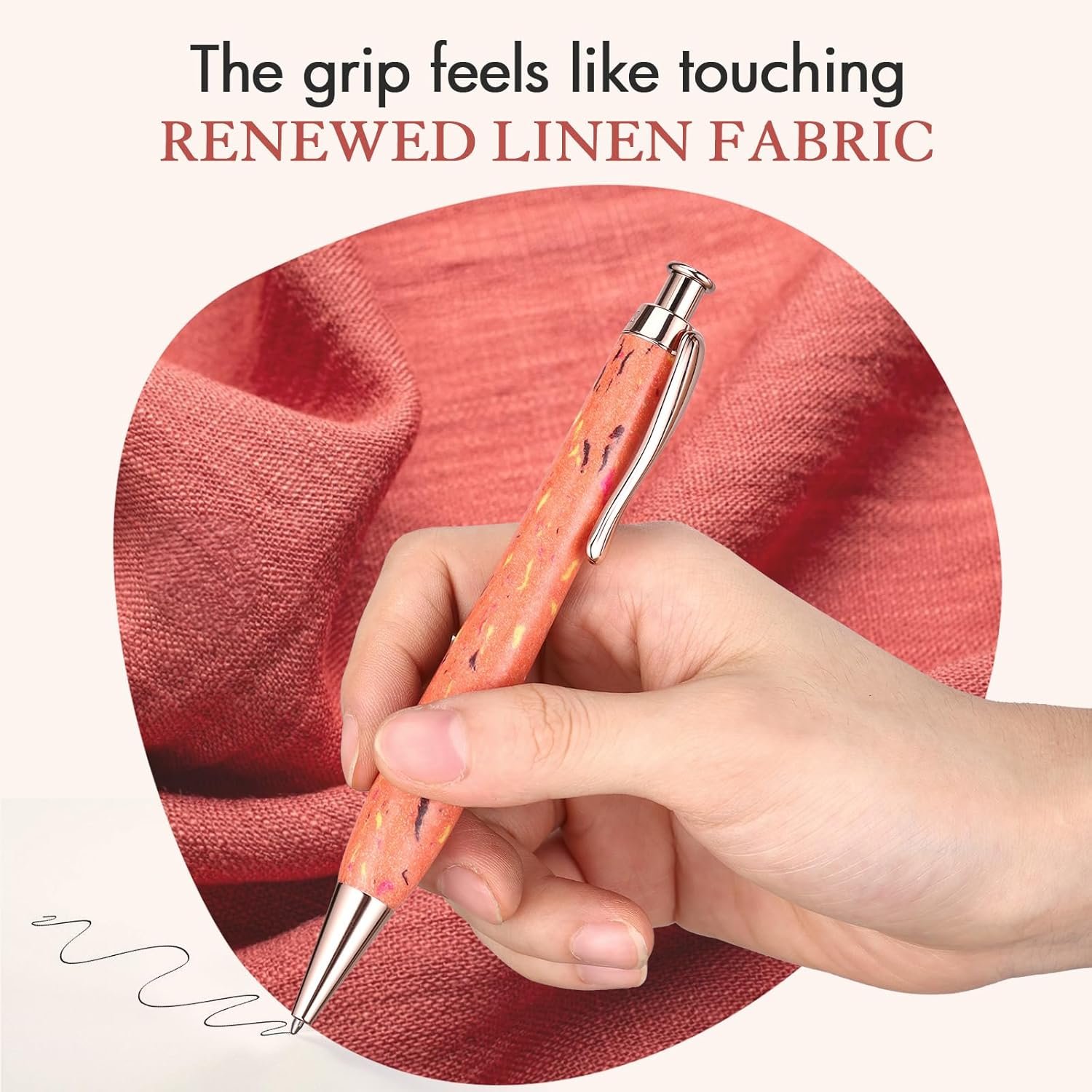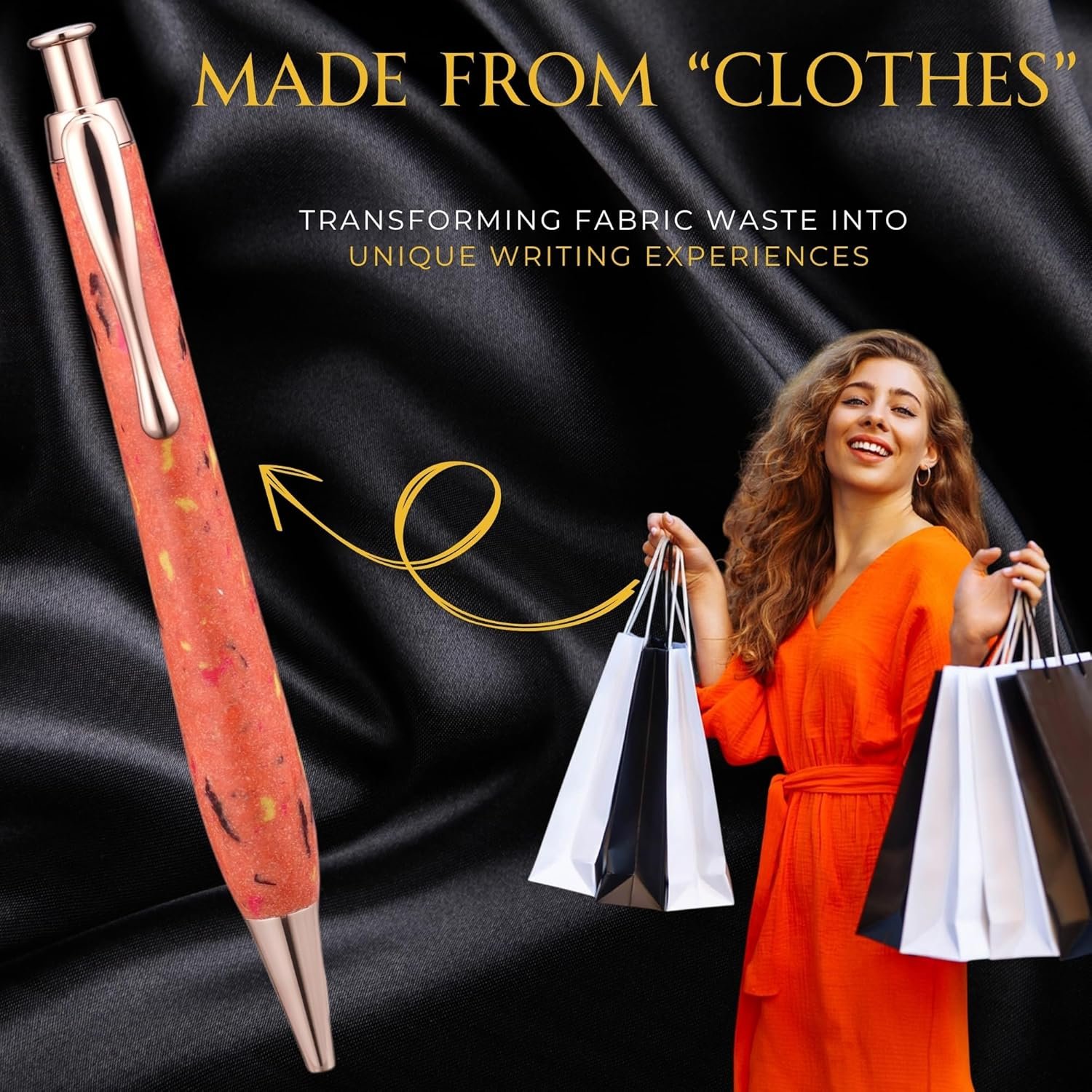 Elegant, Refillable: Made with recycled fabric and refillable black ink, this pen is a sustainable yet luxurious choice. A perfect blend of eco values and timeless function in one beautiful writing tool