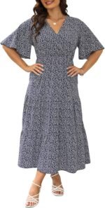 Keluummi Plus Size Wedding Guest Maxi Dresses for Curvy Women, Summer Casual Boho Floral Long Party Sundress with 3/4 Sleeve