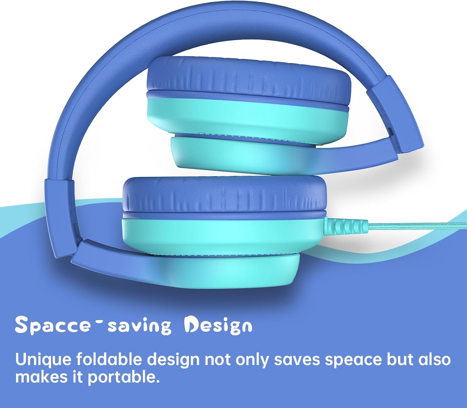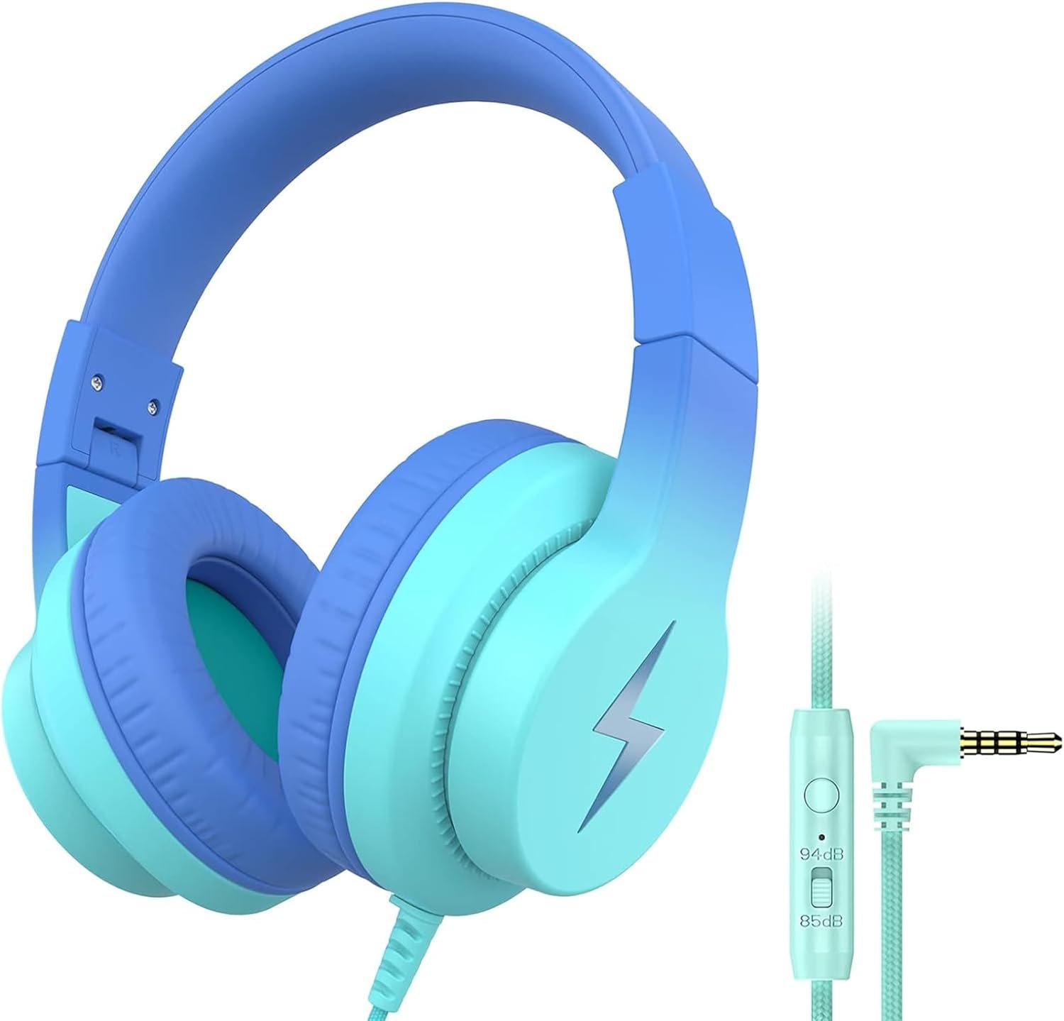 Kids Headphones, Wired Headphones for Kids with Microphone, 85/94dB Volume Limiter Headphones for Girls Boys, Foldable Headphones for Online Study, Gradient Blue