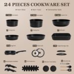 KIKCOIN 24 Pack Pots and Pans Set Non Stick, Detachable Handle Cookware Set, Induction RV Kitchen Cooking Set with Removable Handle, Frying Pans, Egg Pan – Dishwasher/Oven Safe, PFOA Free