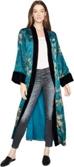 Customers love the robe’s gorgeous colors and luxurious feel, comparing it to silk, and appreciate its quality materials and fully lined construction. The fabric is soft and comfortable, with one customer noting the velvet trim on cuffs and front. Customers disagree on the fit, with one mentioning it’s not suitable for average-sized women.