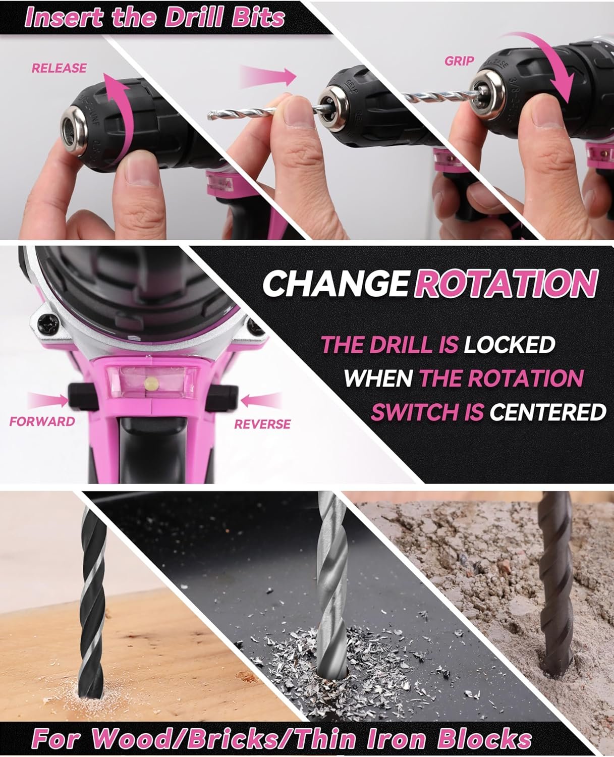 Versatile Tool Sets for All Tasks: KingTool pink tools set is your all-in-one solution for decorating, furniture assembly, drilling, cutting, gardening, office tasks, and everyday home maintenance. No need to search for individual tools, they’re all here in one tool box set