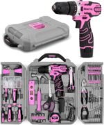 KingTool Home Tool Kit Set – 219 Pieces Pink Tool Kit with 12V Max Power Cordless Drill, Tool Kit for Women, Household Tool Set Kit with Power Drill for Home Office Garden Repair