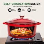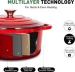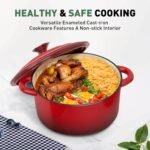 𝑯𝒆𝒂𝒍𝒕𝒉𝒚 𝑪𝒐𝒐𝒌𝒘𝒂𝒓𝒆 𝑺𝒆𝒕𝒔: The enamel coating of this beautiful red cookware set is durable and resistant to cracking and scratching. Non-stick coating make cleanup very easy and most messes can be wiped away in a single swipe. The coating does not contain PFOA, PTFE, lead or cadmium, a great partner for healthy cooking
