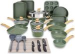 Kitchen Academy Pots and Pans Set Nonstick, 30 Pieces Induction Kitchen Cookware Set, Green Granite Coating Cooking Pans Set