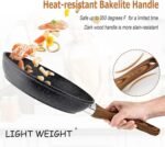 Induction Cookware Sets – When it comes to the interior, this cookware uses an aluminum core. The result is that the pan heats up quickly, and more importantly, distributes heat evenly. The cookware set works on all major types of cooktops. Larger high magnetic conductive stainless steel base ensure induction compatible, especially glass stove