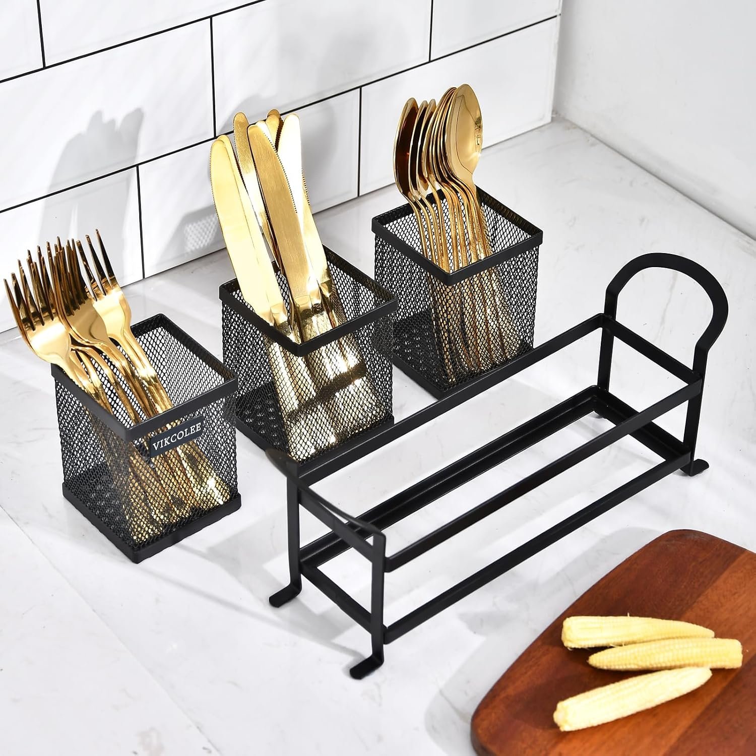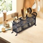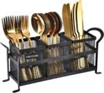 Kitchen Utensil Holder, Silverware Organizer Holder, Compact Metal Organizer for Flatware, Spoons, Forks, and Knives – 3 Separate Compartments Perfect for Kitchen Countertop- Black