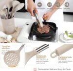 HEAT-RESISTANT, NON-MELTING, ODOR-FREE: healthy silicone tips with no harsh chemical odor. Each cooking utensil can withstand temperatures of up to 446°F. They also won’t melt when stirring food directly in the pan. The all-around silicone adds softness, no more worrying about food sticking to your cookware. Extend the life of all your kitchen pots and pans