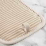 Made of insulated, heat resistant cotton, this oven mitt and pot holder set protects hands, forearms, and countertops from heat while cooking and baking