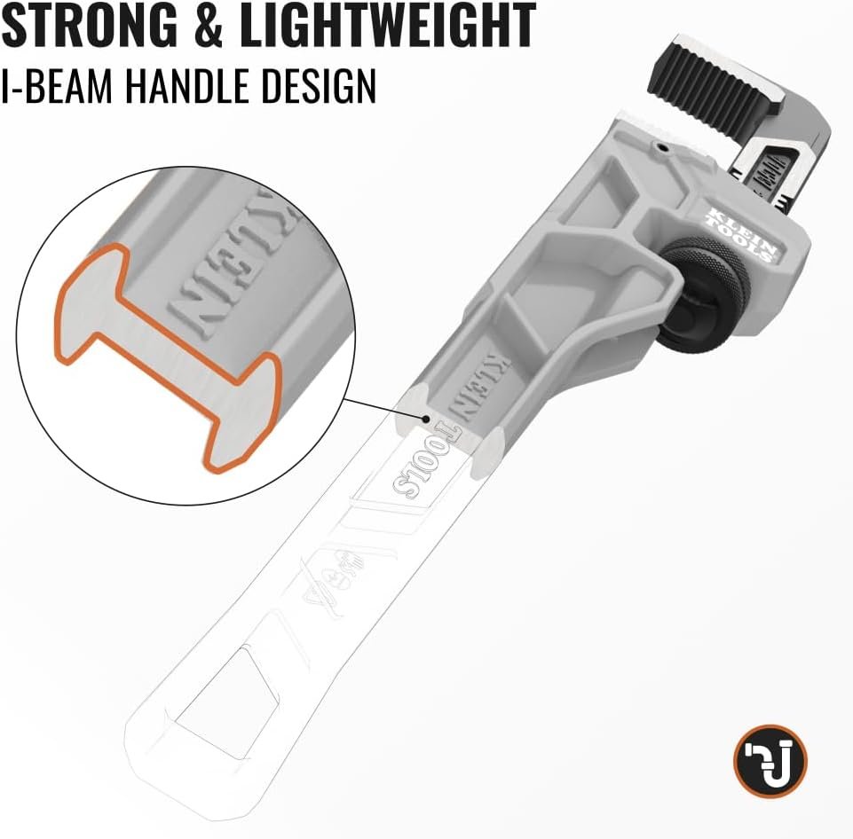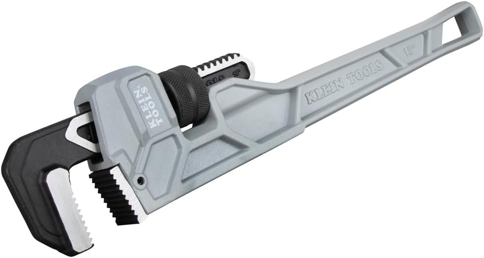 Klein Tools 68225 18-Inch Cast Aluminum Pipe Wrench, Heavy Duty Adjustable Plumbing Wrench with I-Beam Handle, 2-1/2-Inch Jaw Capacity