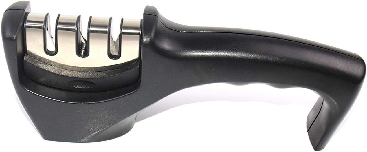 EASY USE – Safe and durable. Ergonomic handle has been designed to fit your hand, providing a good firm grip. Simply pull your dull knife through each of the three stage slots to perfectly sharpen any knife, no matter how dull.