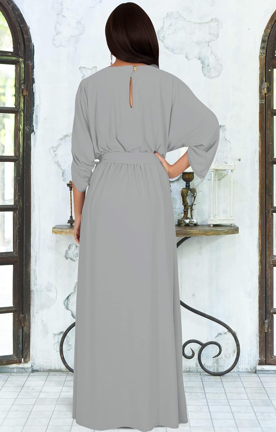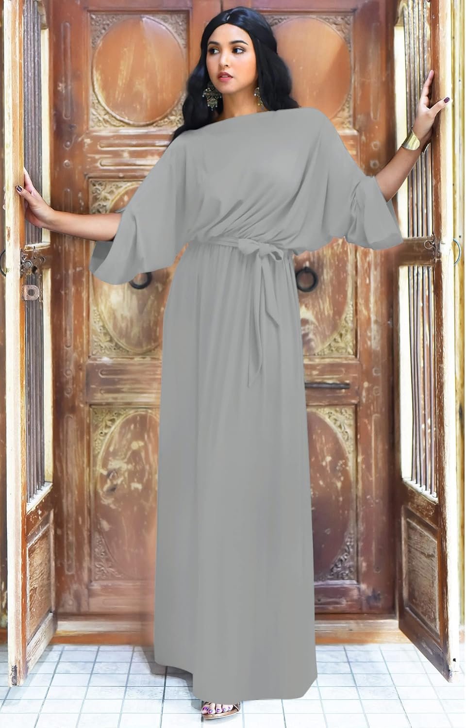 KOH KOH Flowy Formal Batwing Sleeve Evening Casual Gown