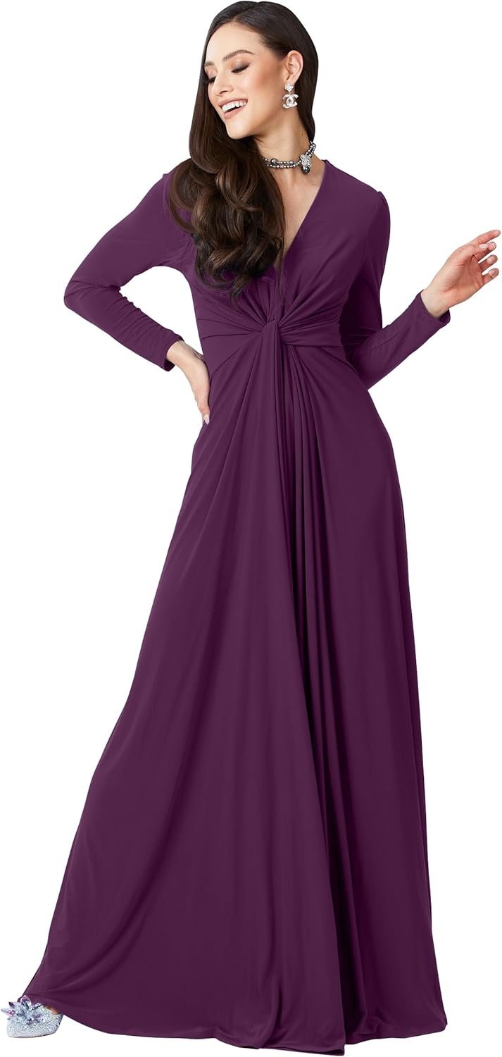 KOH KOH Womens Long Sleeve Flowy Formal Evening Elegant Designer Maxi Dress