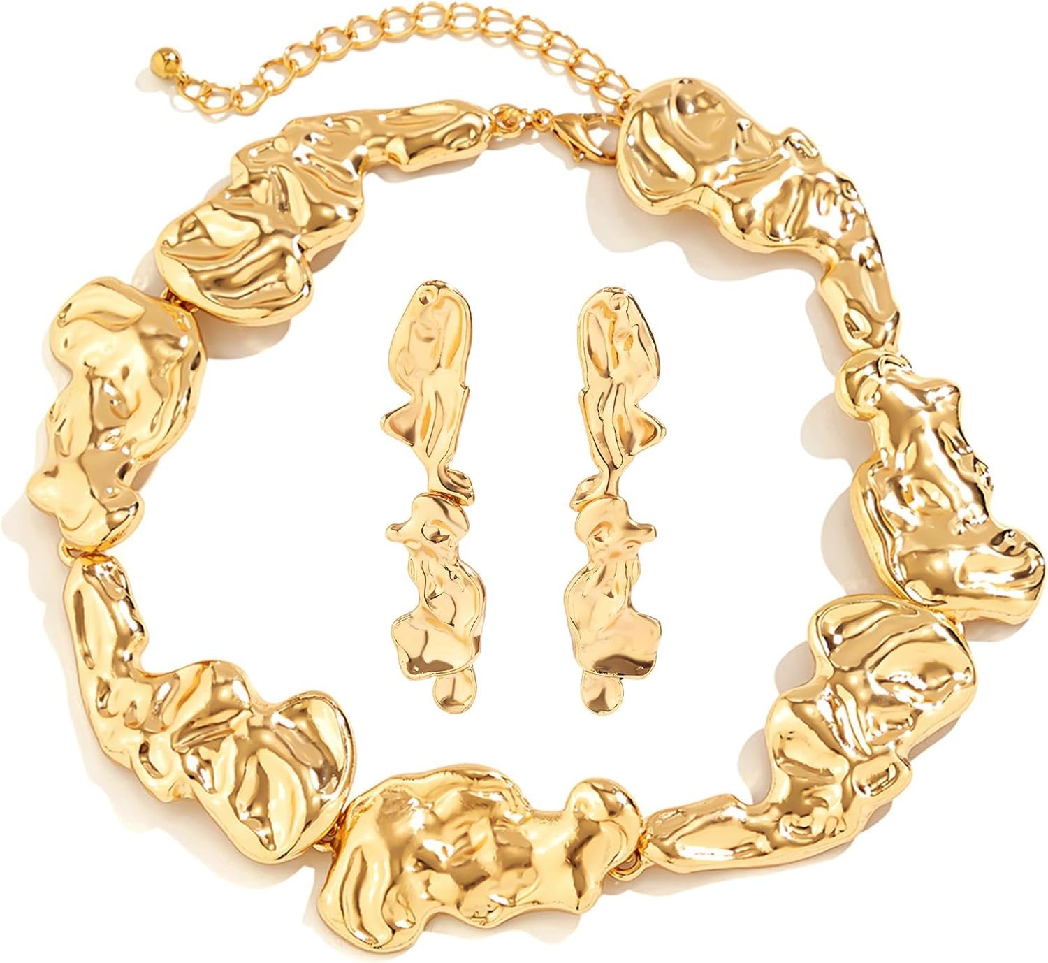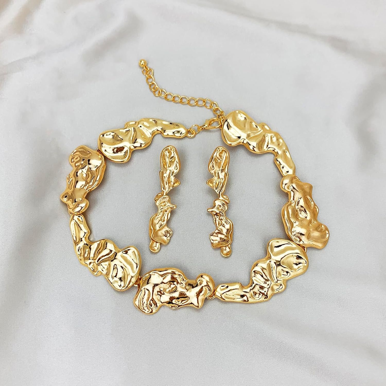 KOLODOGO Gold Irregular Lava Choker Necklace and Earrings Set Chunky Statement Necklace Punk Jewelry Set Gold Chain Pendant Necklace for Women