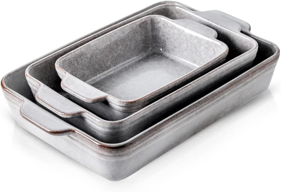 KOOV Bakeware Set, Ceramic Baking Dish Set, Rectangular Casserole Dish Set, lasagna Pan, Baking Pans Set for Cooking, Cake Dinner, Kitchen, 9 x 13 Inches, Reactive Glaze 3-Piece (Variable Grey)