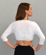 Kosher Casual Women’s Modest High Neck Cropped Layering Shell – Viscose Spandex 3-4 Sleeve Base Pullover Top