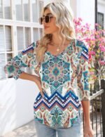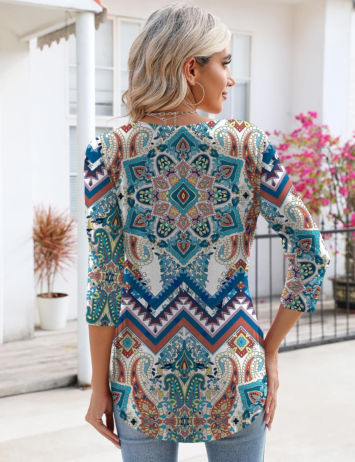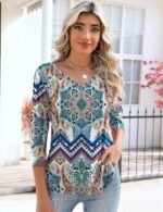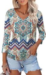 V Neck Shirts Women 3/4 Sleeve Shirts for Women