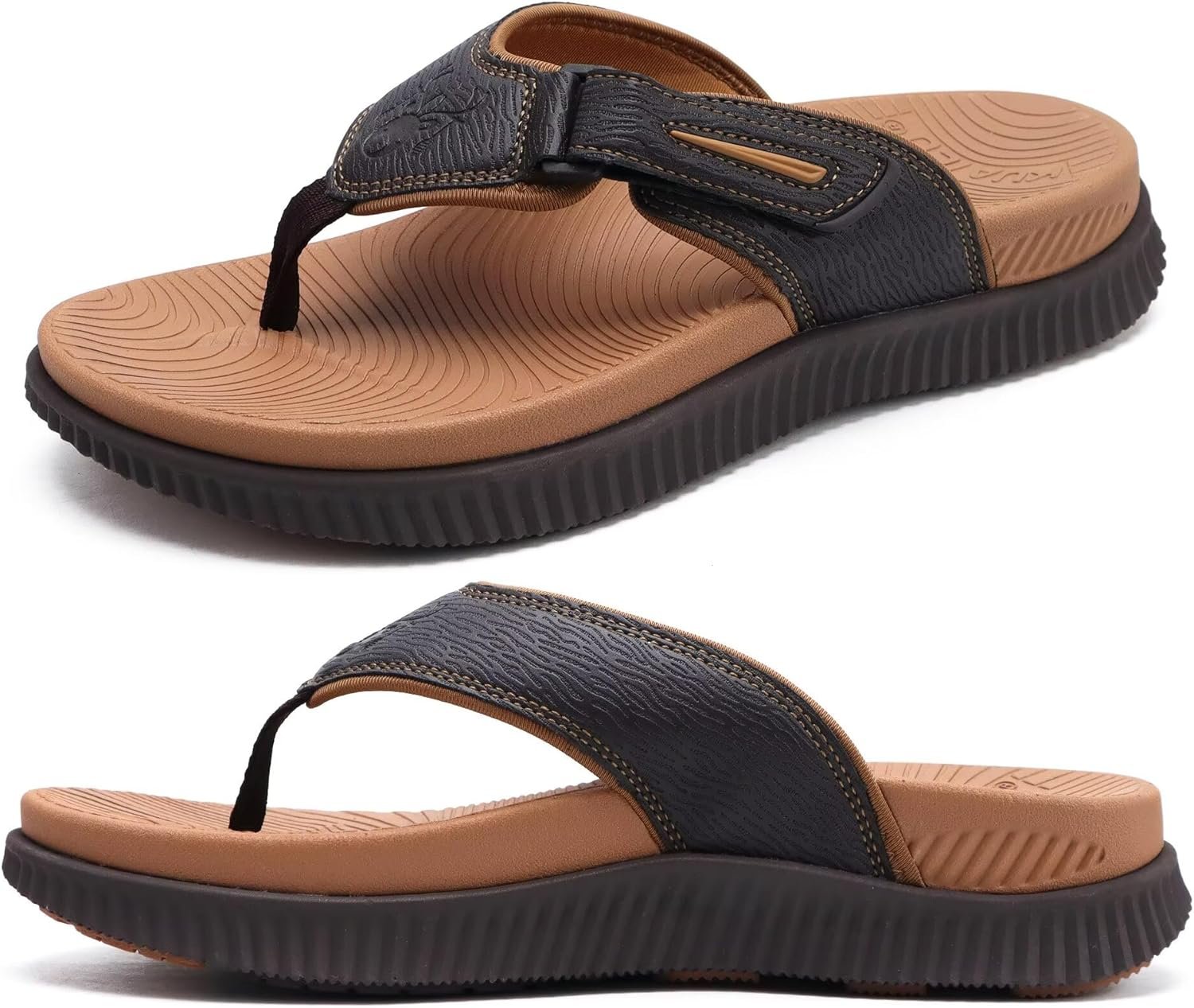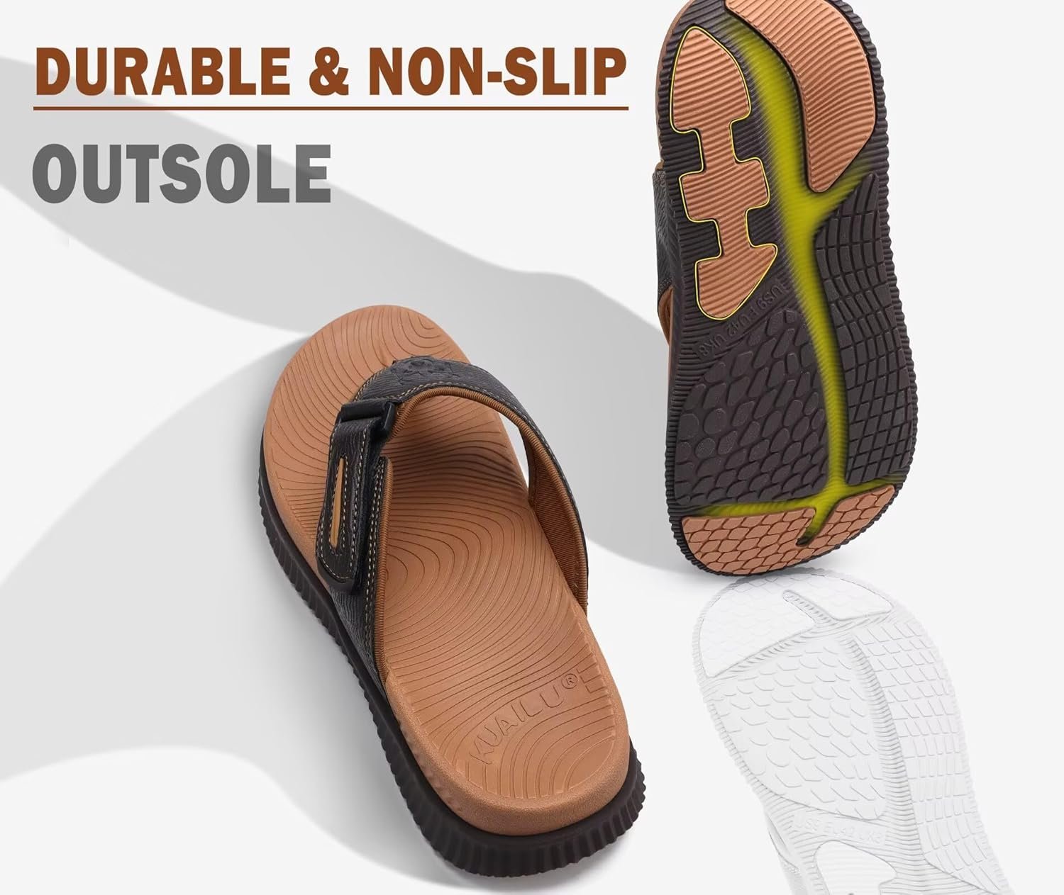 KuaiLu Mens Orthotic Flip Flops Men’s Recovery Walking Sandals Adjustable Thick Athletic Cushion Sport Slides for Man, Water Resistant & Lightweight, Soft Comfort Fit & Arch Support