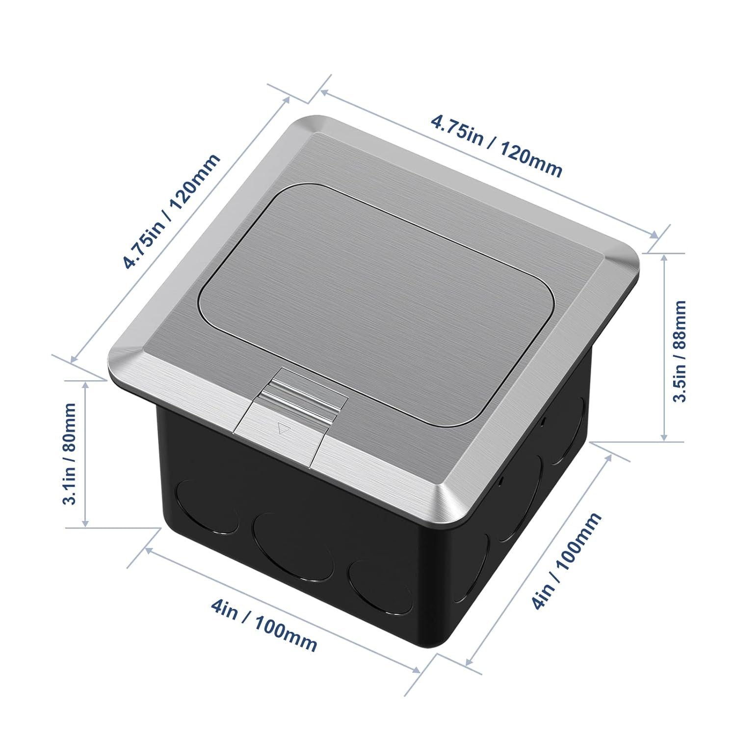Product composition:Includes a hard material solid Silver floor box flip up cover with twisting lock, one 20A GFCI duplex tamper resistant receptacle, one galvanized steel junction box with 12 side and bottom knockouts. Adding dampers makes the product slowly open(There are two brackets in package to stabilize and keep it from being pulled out of the wood floor, counter top or kitchen island.