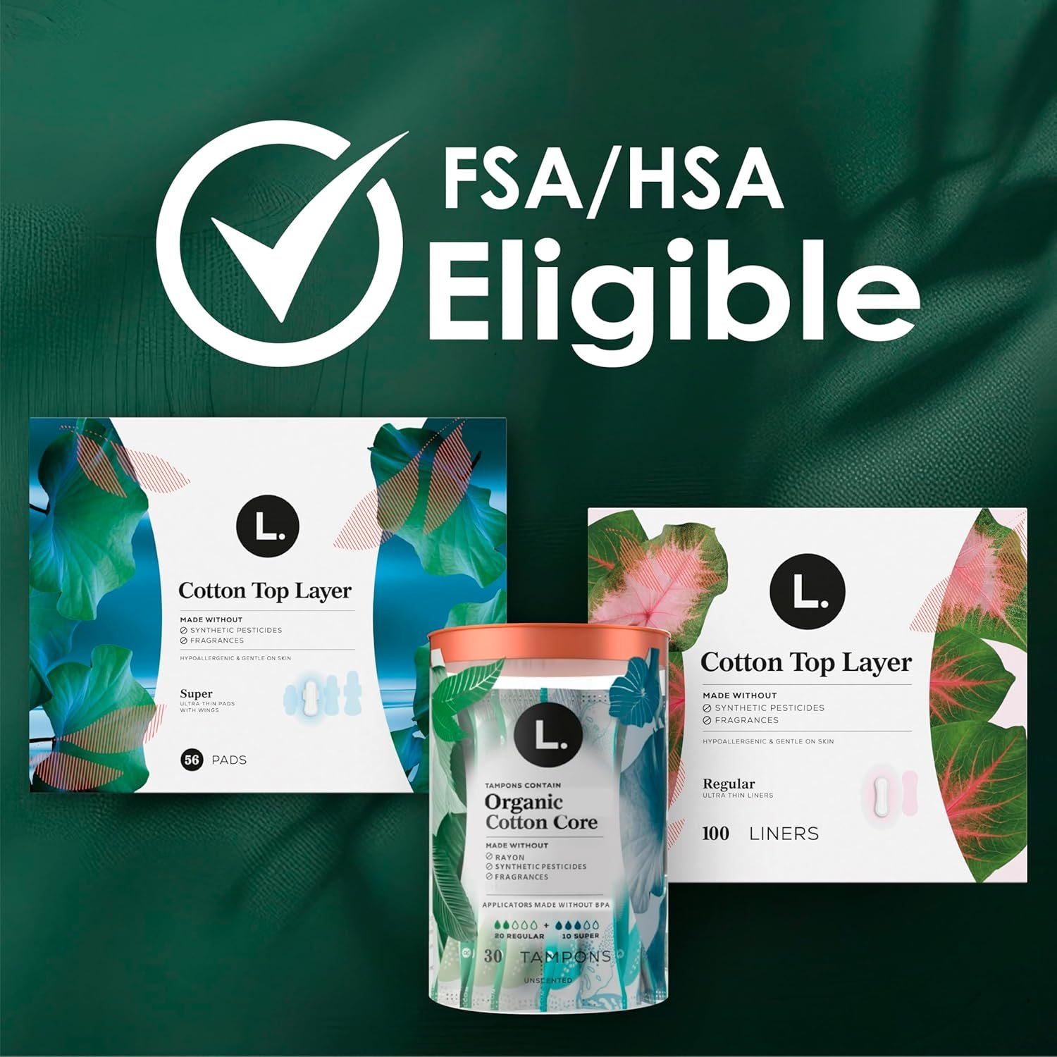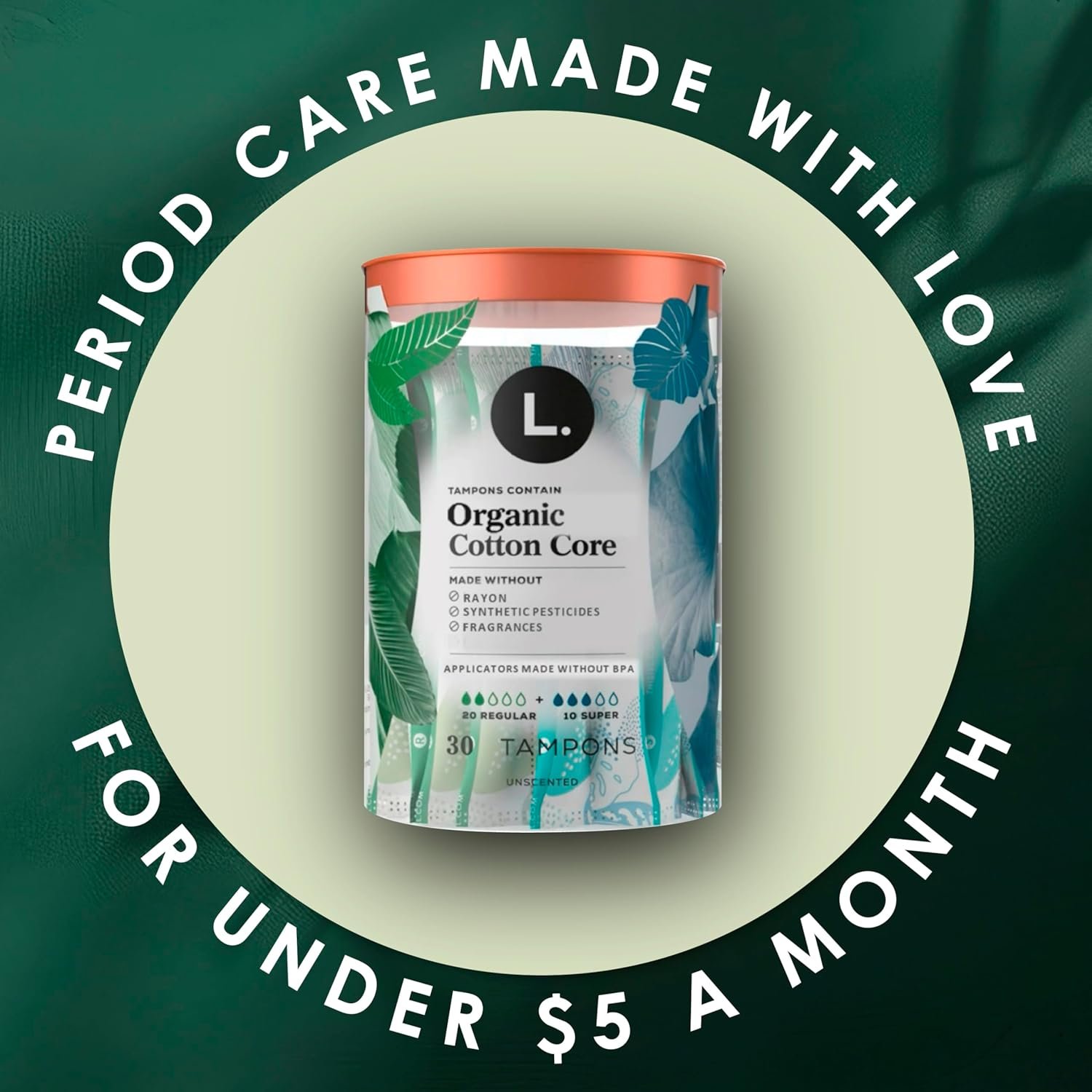 L. IS FOR LOVING YOUR BODY: Our tampons are made with an organic cotton core, made without rayon, fragrances, and synthetic pesticides. That’s what we call period care designed with every body and every budget in mind. *** L. IS FOR LOVING YOUR BUDGET: We are committed to making high-quality period care accessible to everybody, and for that reason our tampons won’t stress out your budget. L. Makes premium products accessible without the premium price because we believe that access to high-quality period care is a fundamental right for everybody. *** L. IS FOR LENDING A HAND: We see access to period care not only as a fundamental right for everybody, but an opportunity for change as well. We are on a mission to make exceptional period care accessible for all. That’s why we provide funding every year to non-profit, community-based organizations around the world that increase sustainable access to period care products, menstrual health education, and employment opportunities. This is L. Is exceptional period care made accessible for all. *** L. IS FOR LEADING WITH TRUST AND TRANSPARENCY: We will continue to prominently feature our ingredients on our packaging so that when you reach for our products, you’ll know exactly what’s in them and what role each ingredient plays. We assess all of our ingredients for safety so you know our products are safe for you to use. Your trust in our products is what keeps us innovating and continuing along our period protection journey.