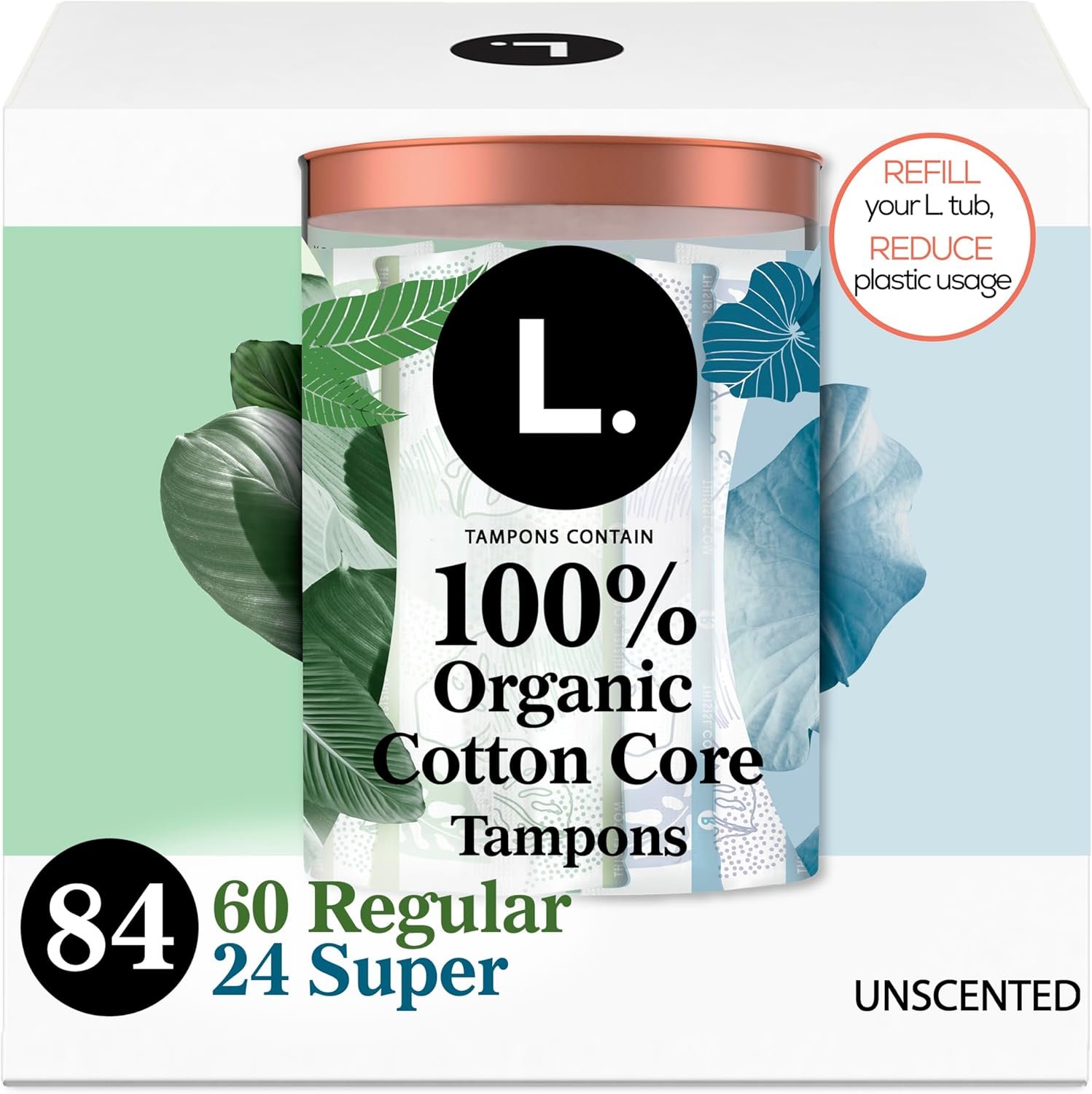L. Cotton Tampons Regular/Super Absorbency Multipack, Contains an Organic Cotton Core, Made Without Synthetic Pesticides, or Fragrances 84 Count