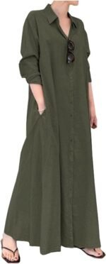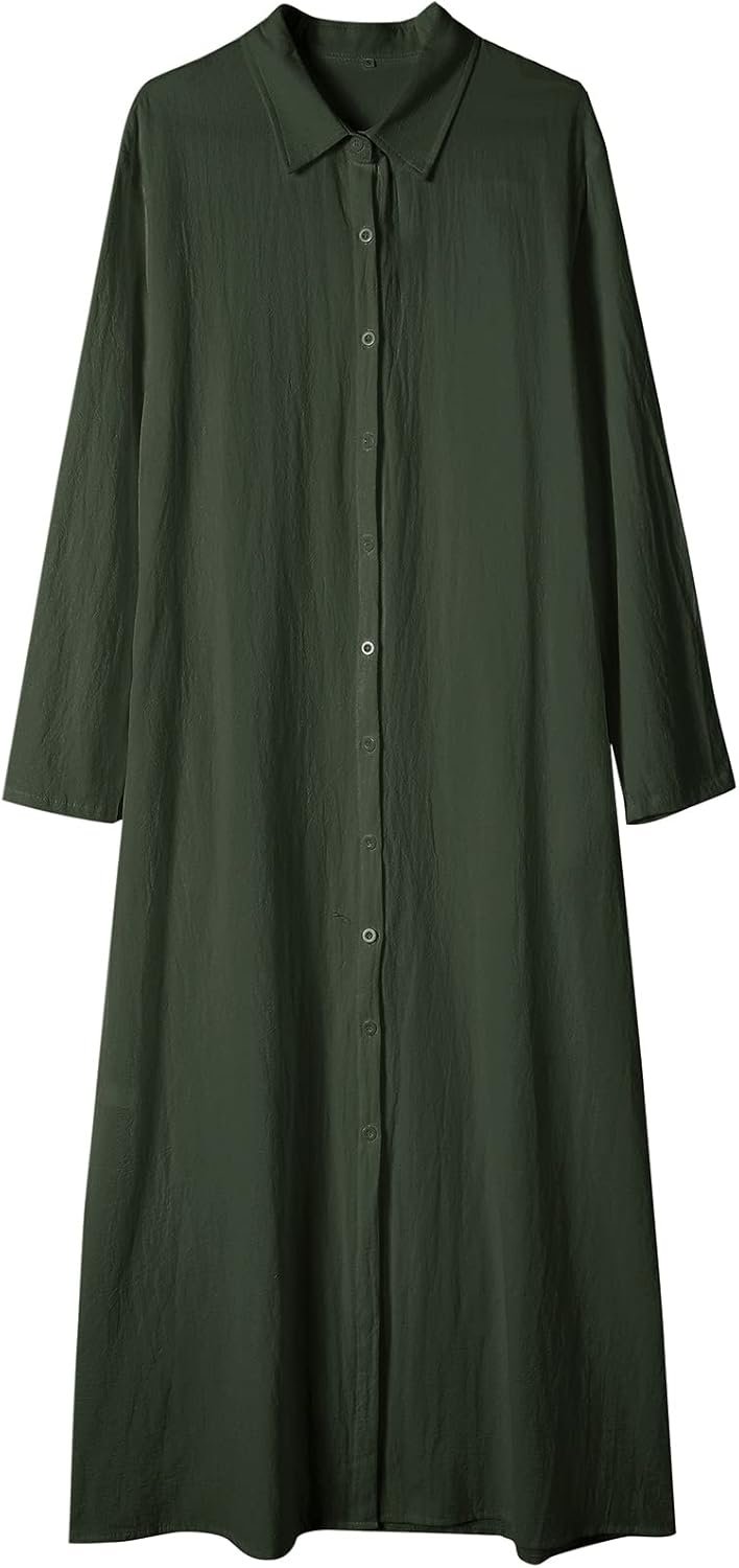Ladyful Women’s Casual Button Down Cotton Linen Long Shirt Dress