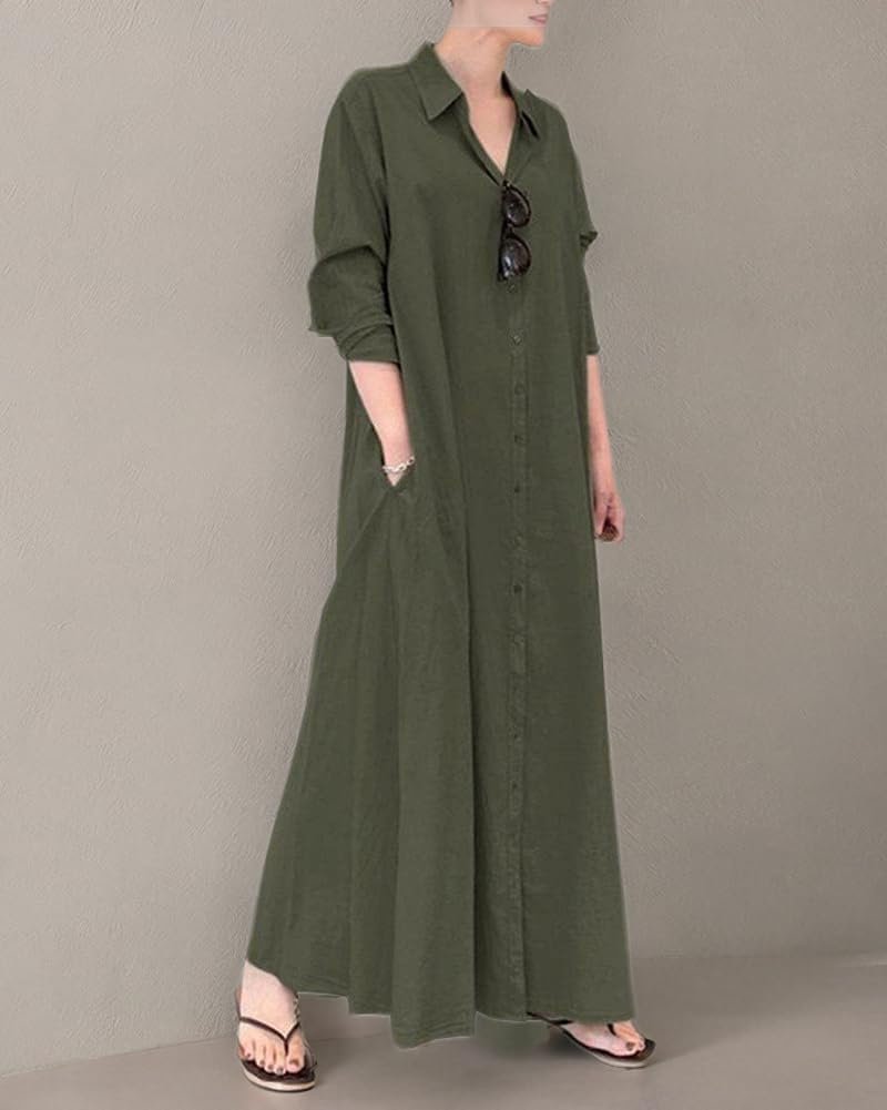 Button down shirt dress/long sleeve cotton linen dress/maxi shirt dress for women/ summer long dress/ black cotton linen dress/full length shirt dress for women