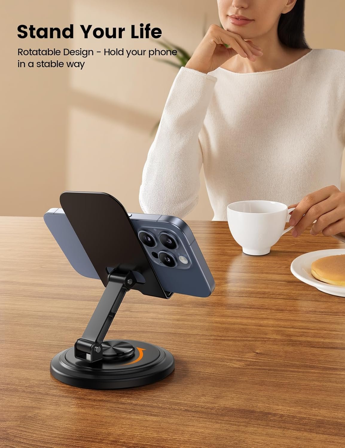 Lamicall Adjustable Phone Stand for Desk – 360 Rotating Foldable Cell Phone Holder Desktop Portable Cellphone Stand, Office Desk Accessories for iPhone 16 15 14 13 Pro Max, 4-10” Smartphones, iPad