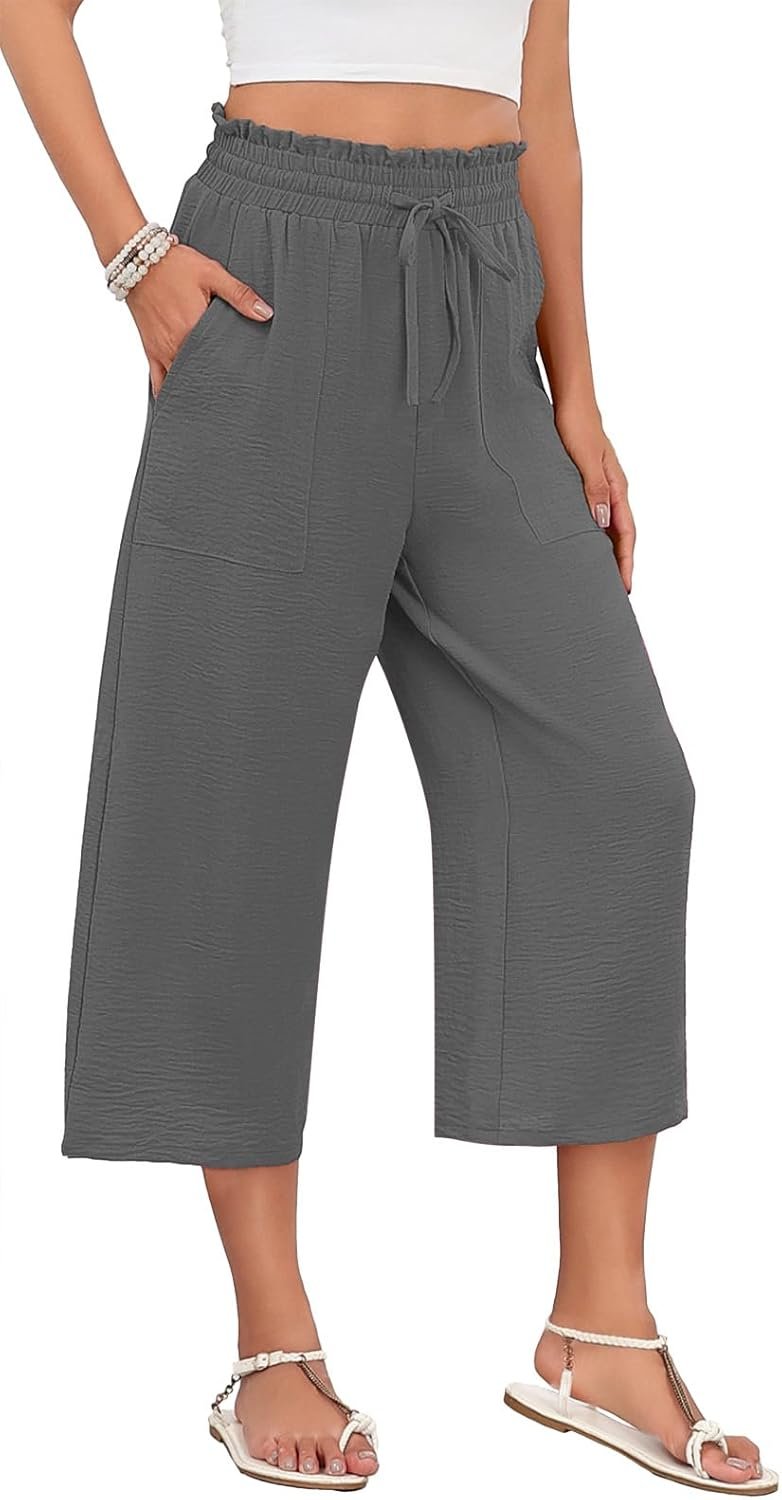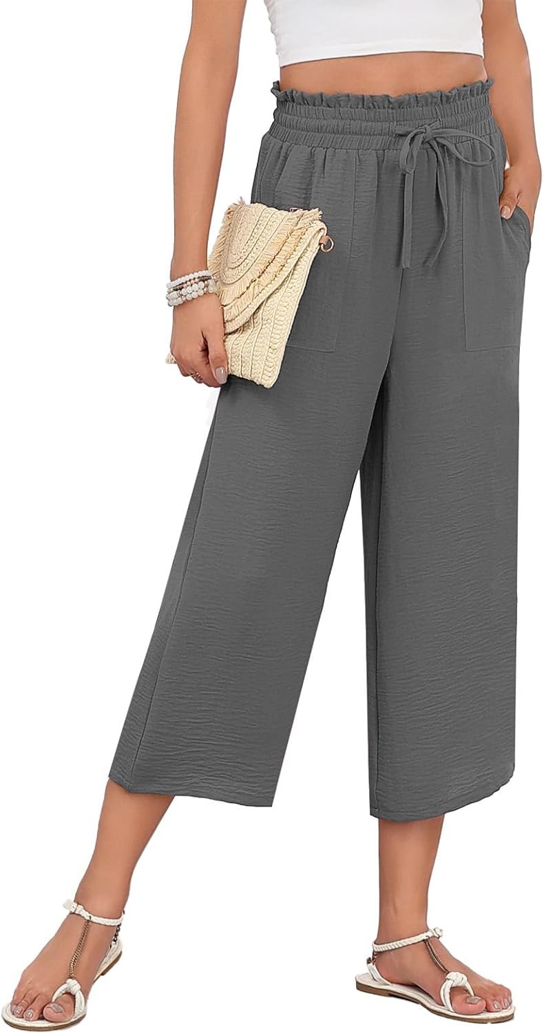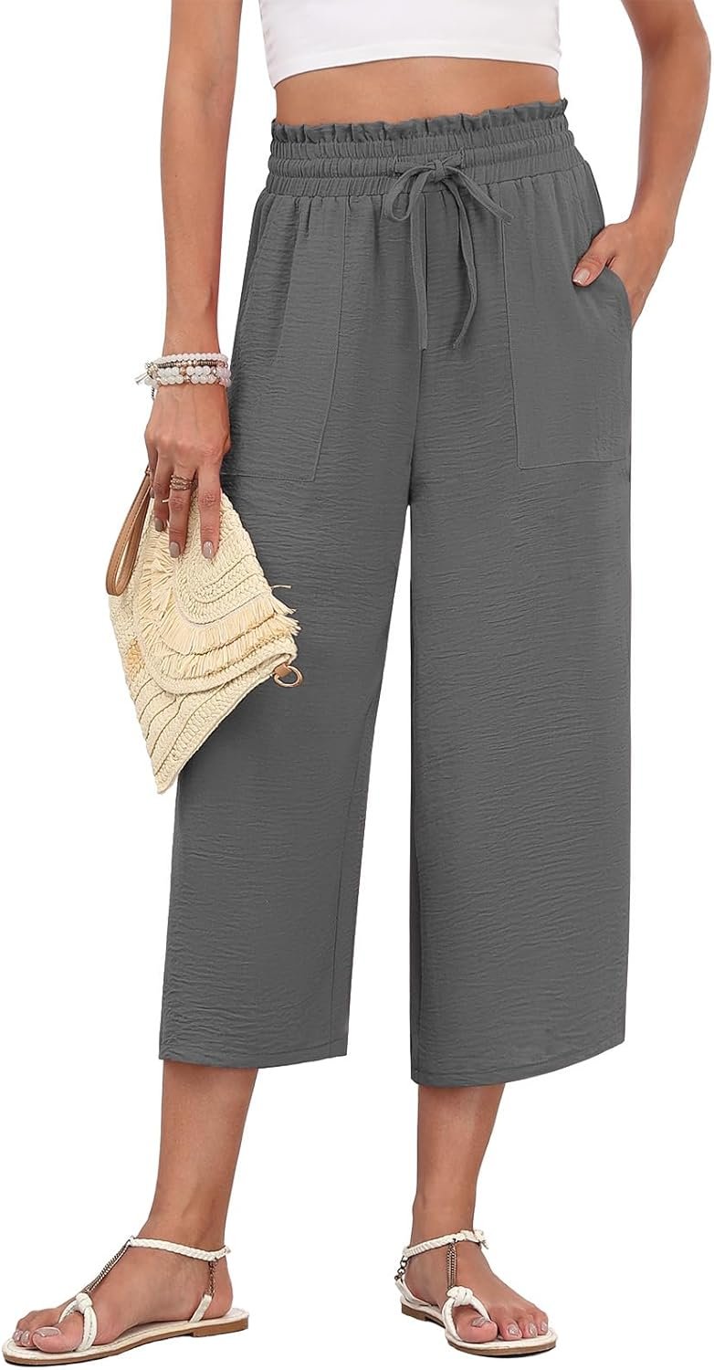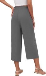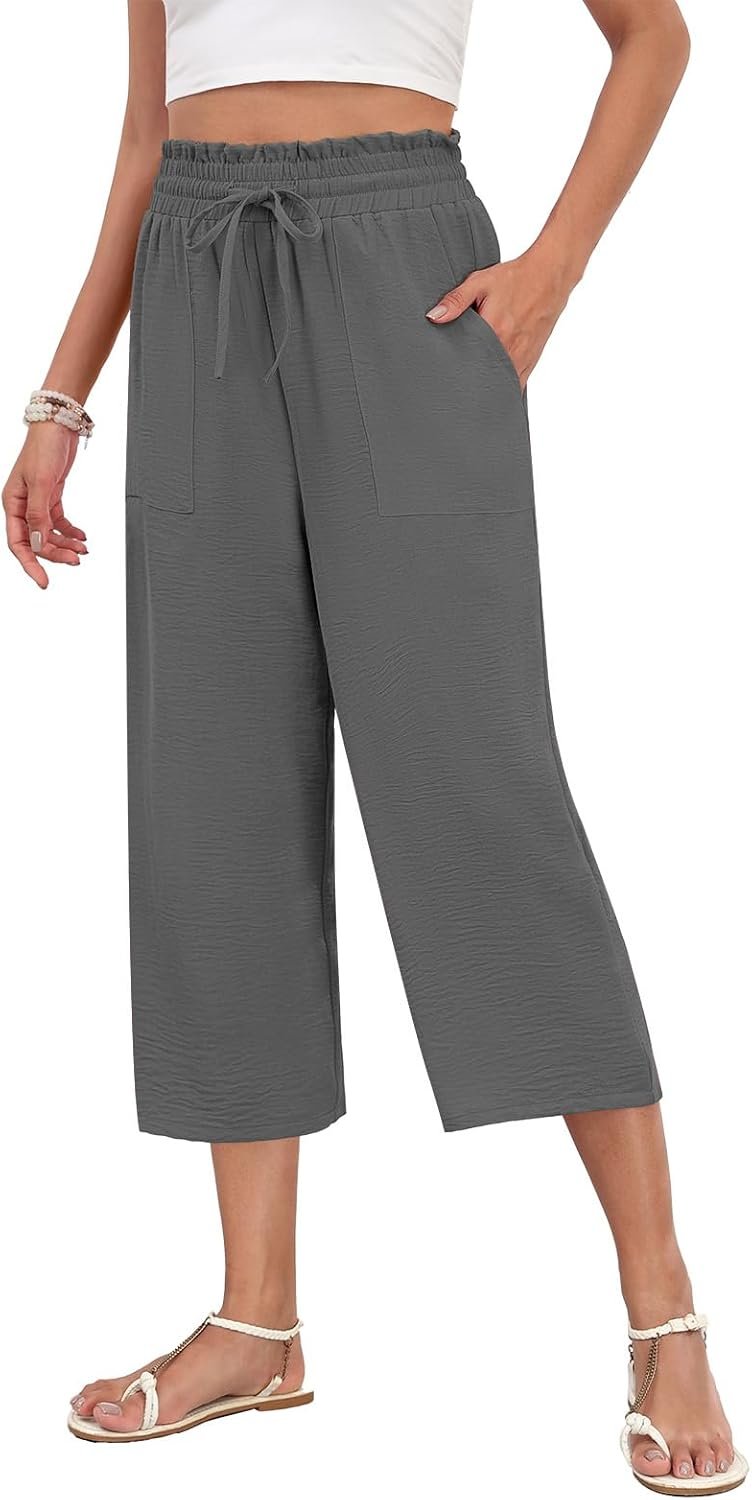 LAOLASI Womens Capri Pants Casual High Waisted Wide Leg Lounge Pants Drawstring Loose Palazzo Pants Trousers with Pockets