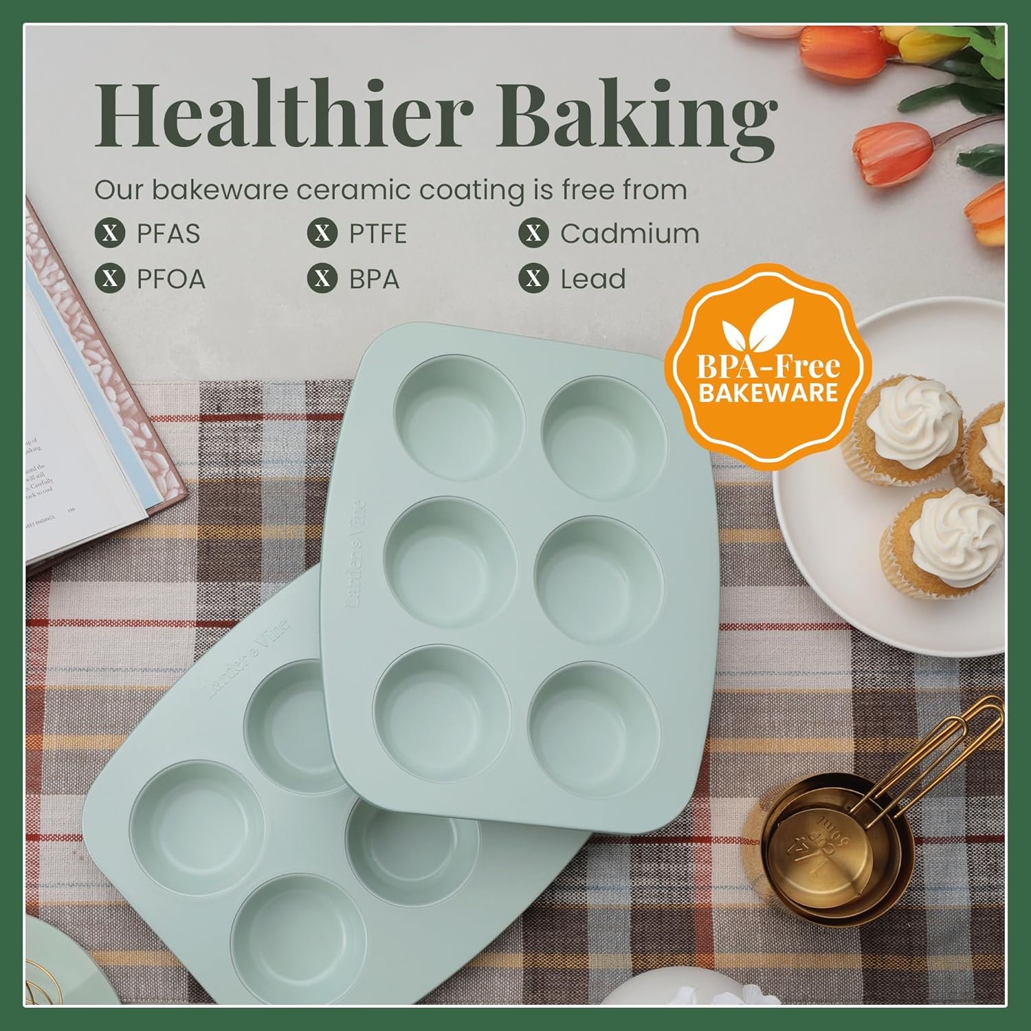 Larder & Vine 8-Piece Bakeware Set | Non-Stick Baking Set with Ceramic Finish | PFAS, PFOA, PTFE, and BPA Free Baking Essentials | Baking Sheets, Muffin Tins and Assorted Baking Pans | Sage