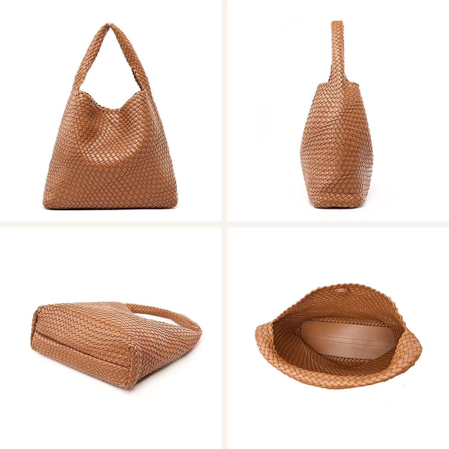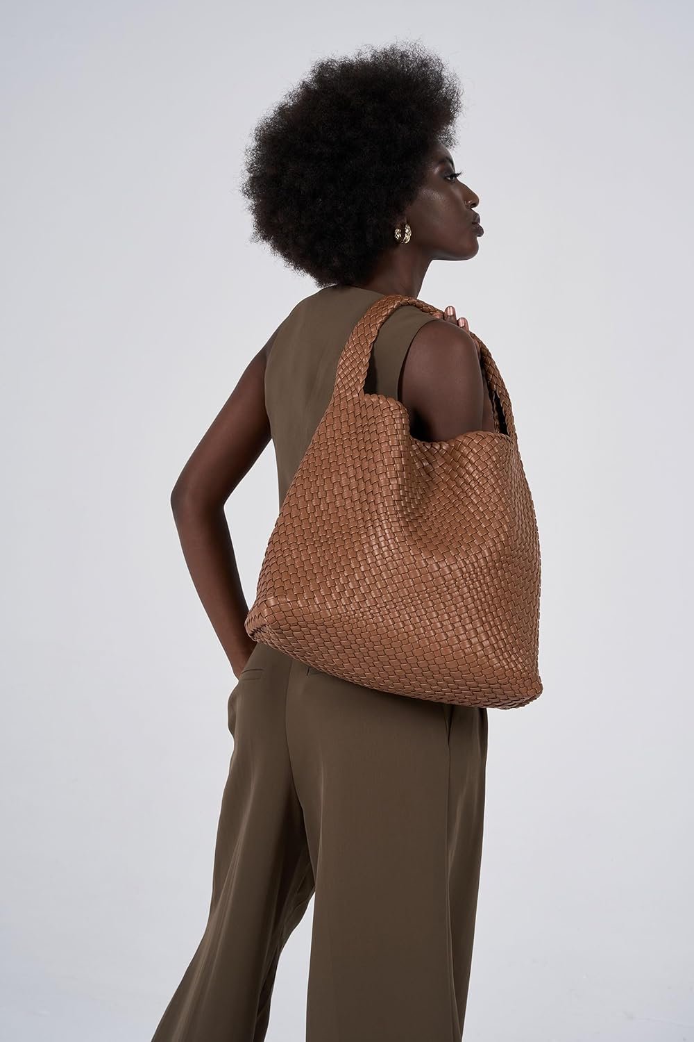 Large Vegan Leather Tote Bag – Woven Purse for Women